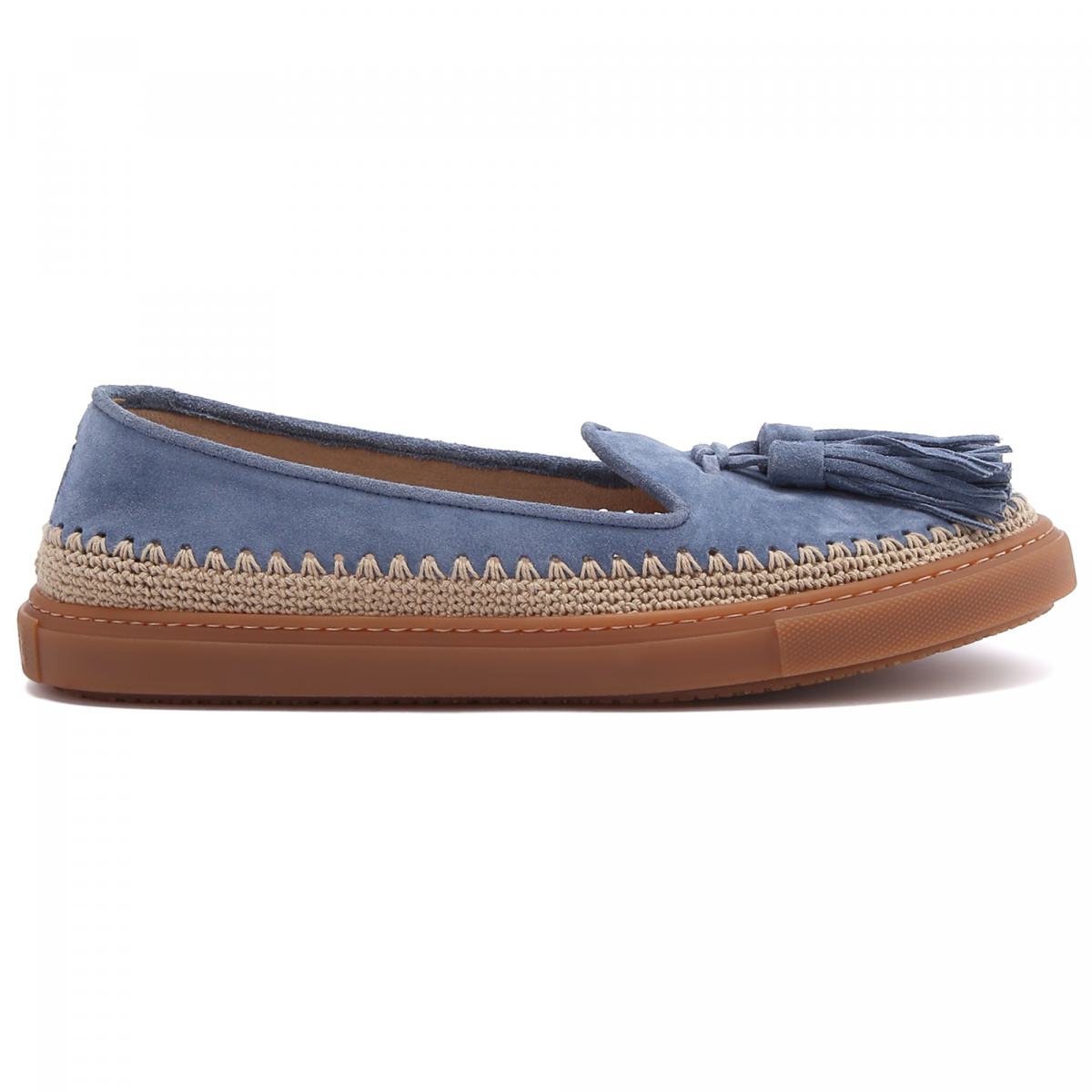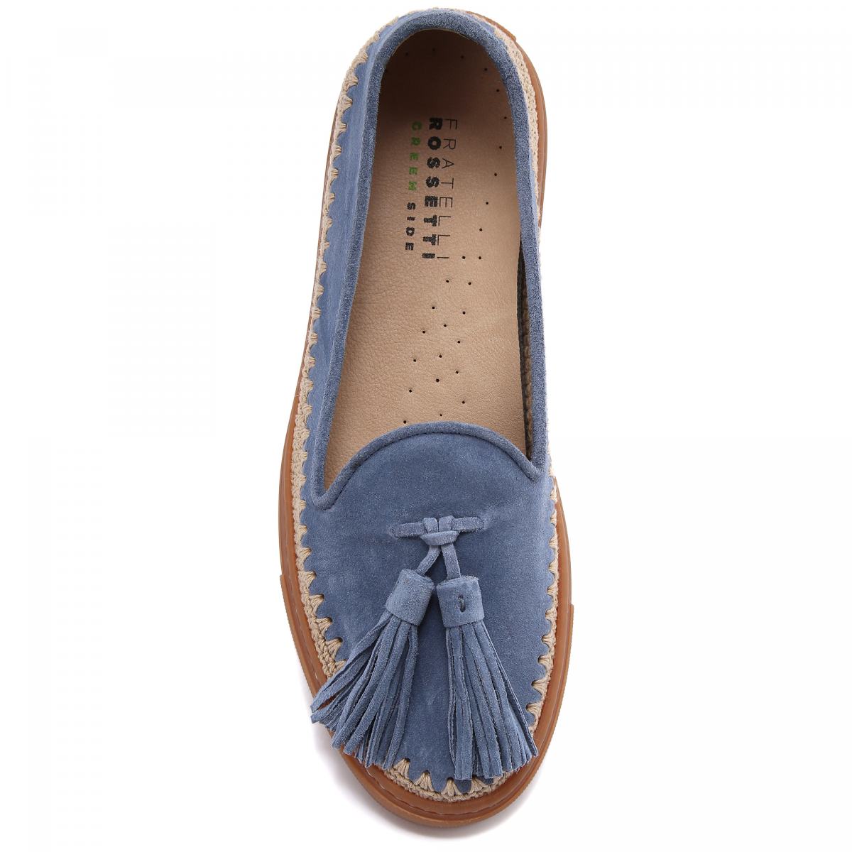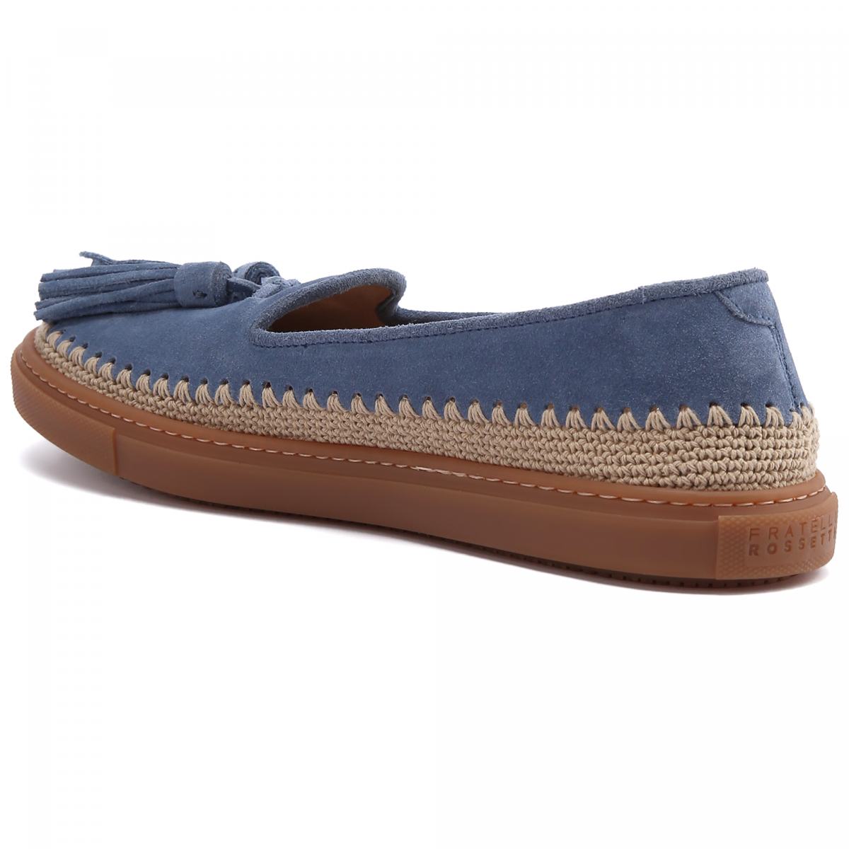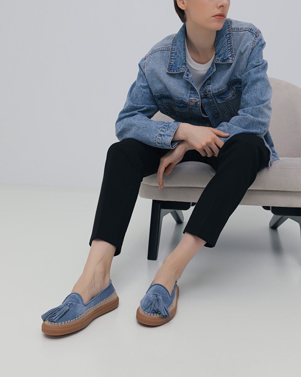 Эспадрильи из мягкой натуральной замши от Fratelli Rossetti One. Очень мягкие и удобные, эти туфли подойдут к образам в стиле casual на каждый день. Пара изготовлена из натуральной замши голубого цвета. Дизайн удачно дополняет плетёная вставка у подошвы и фирменные замшевые кисточки сверху. Гибкая подошва выполнена из резины, стелька - из натуральной кожи.