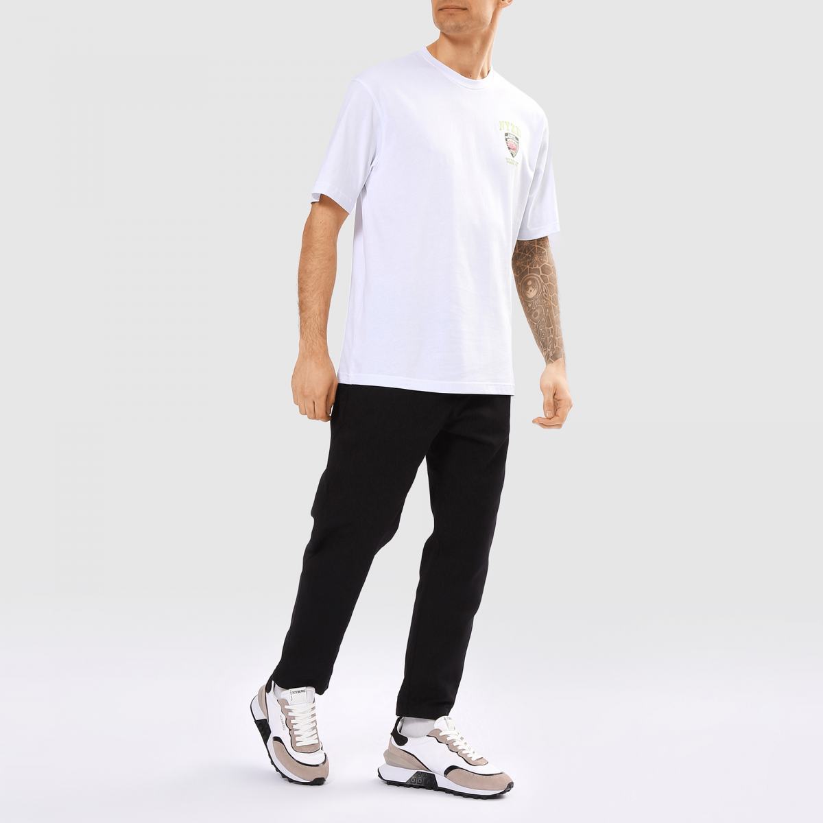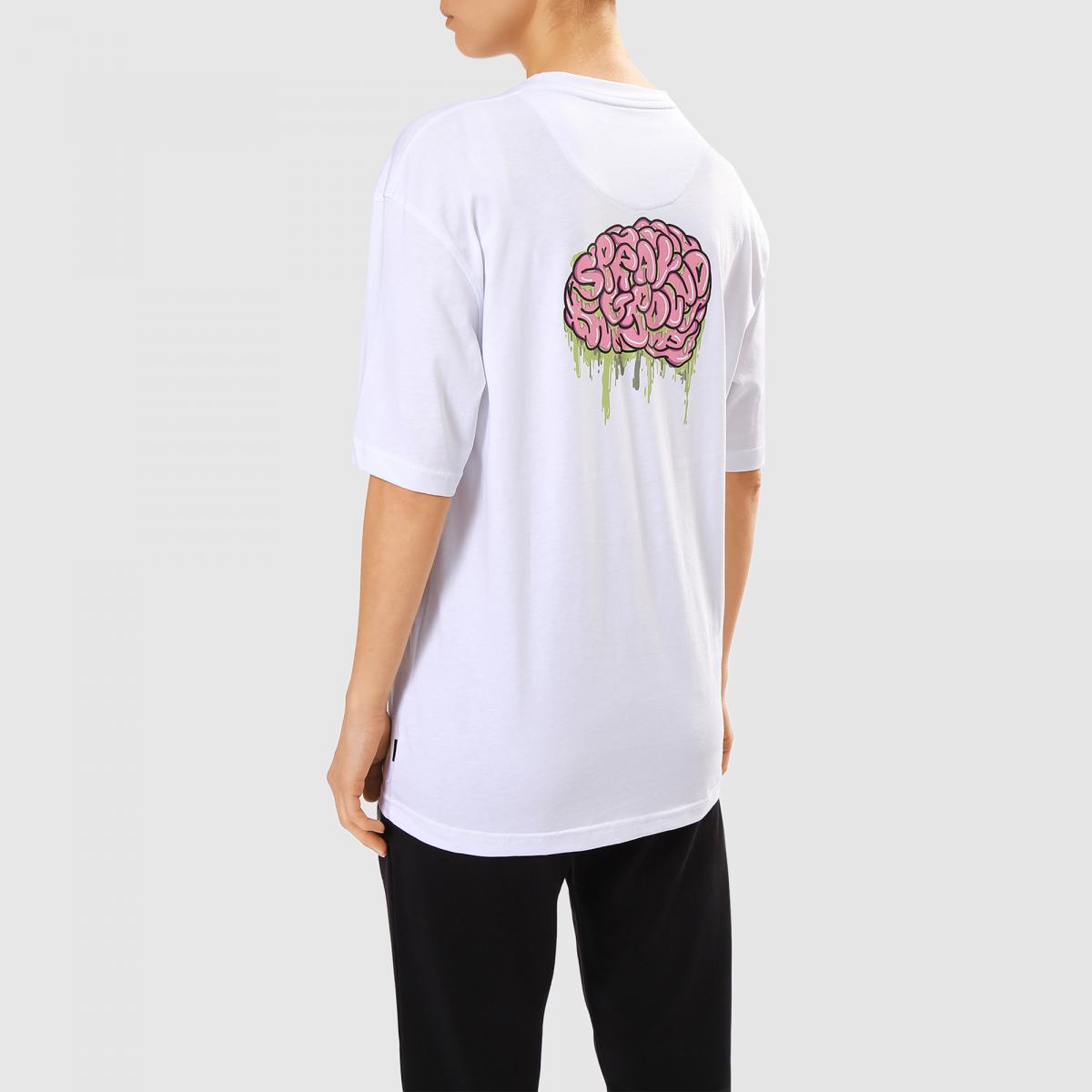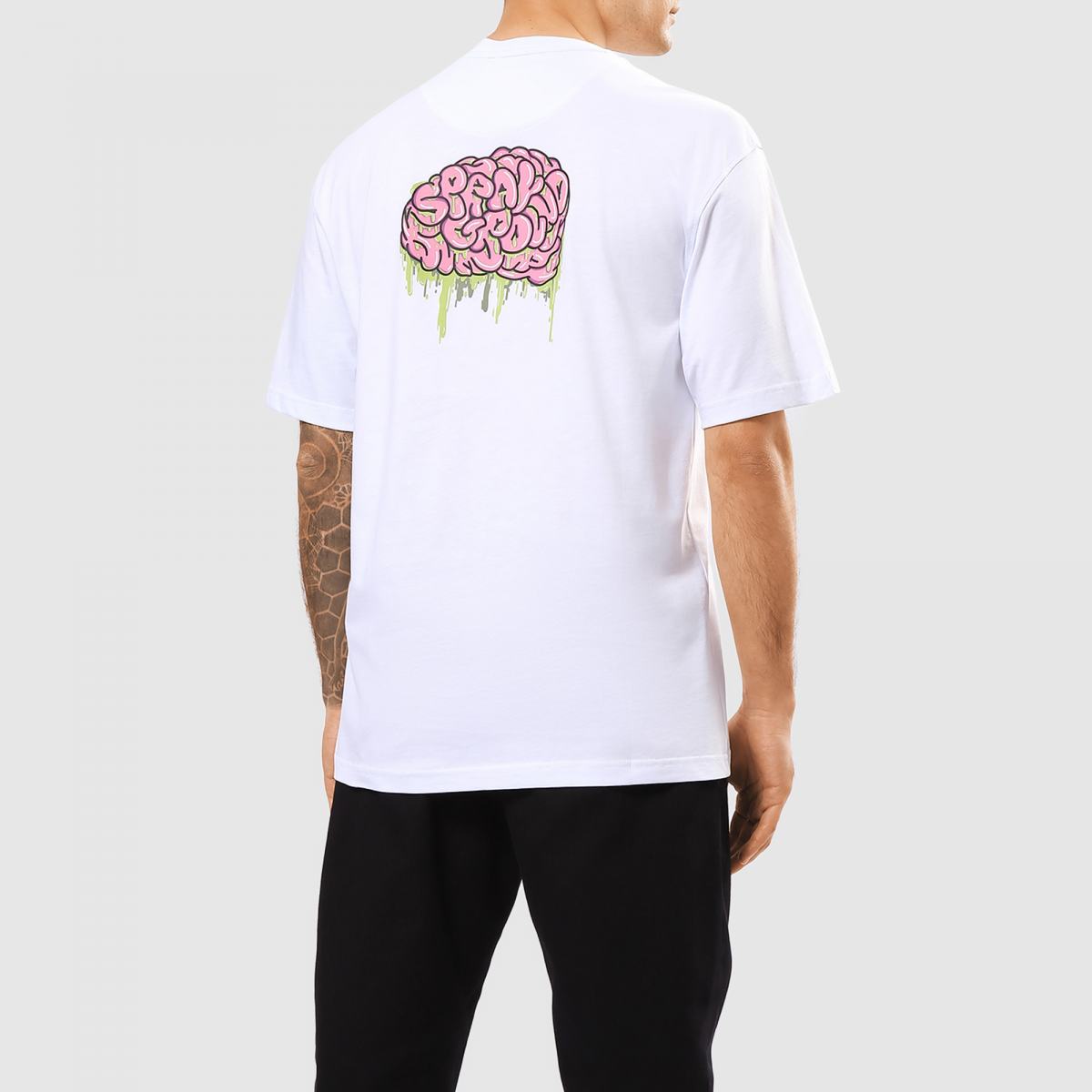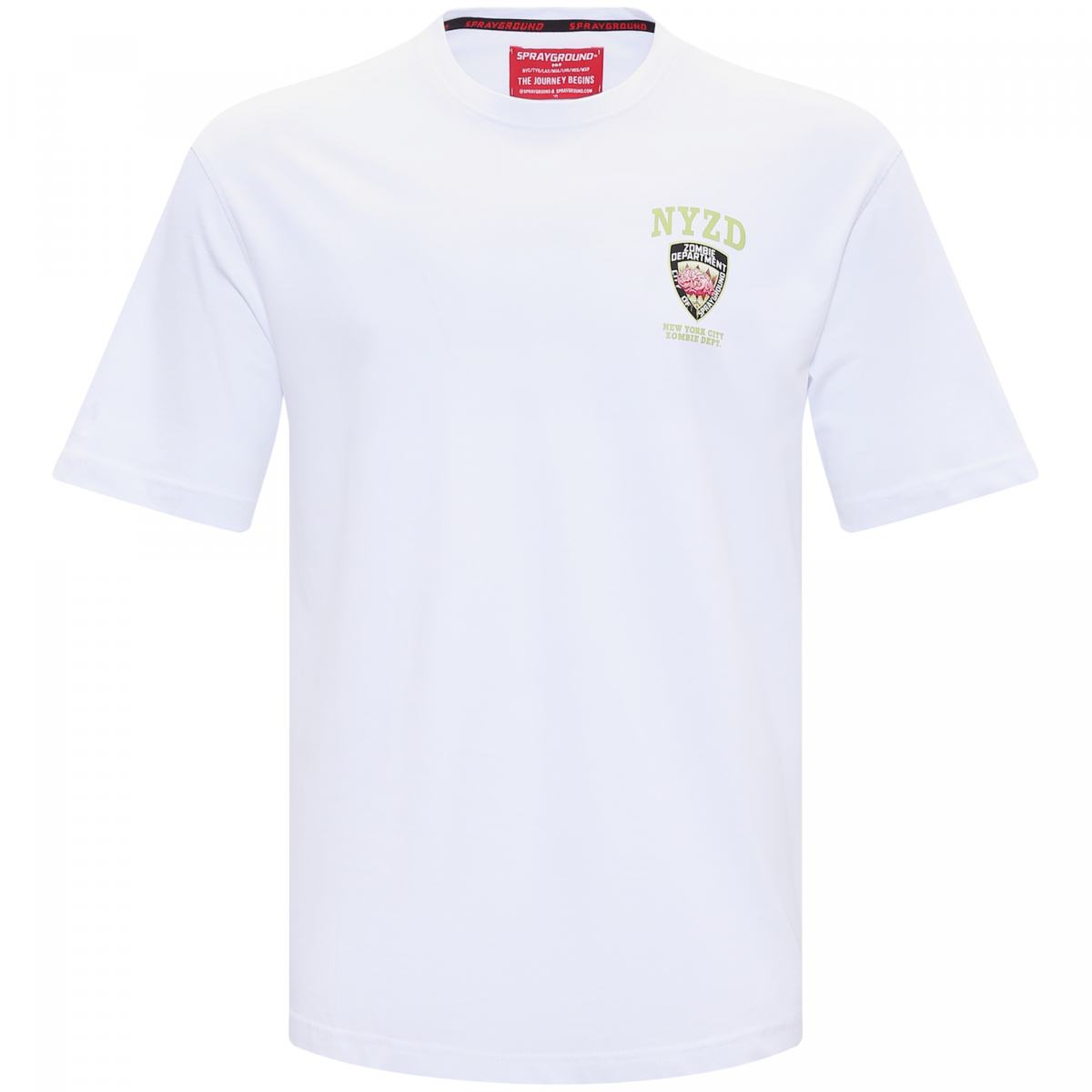 Хлопковая футболка от SPRAYGROUND. Белая футболка поможет создать нескучный повседневный образ. Модель выполнена из 100% хлопка. Прямой крой, свободные рукава и длина до середины бедра обеспечат чувство свободы и комфорта. Спереди футболку украшает эмблема, а на спине — оригинальное изображение логотипа бренда. Сочетайте футболку с любыми брюками, джинсами и шортами.