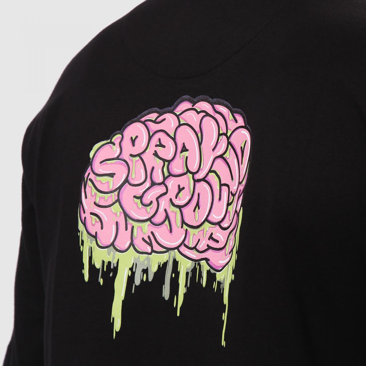 Хлопковая футболка от SPRAYGROUND. Чёрная футболка поможет создать нескучный повседневный образ. Модель выполнена из 100% хлопка. Прямой крой, свободные рукава и длина до середины бедра обеспечат чувство свободы и комфорта. Спереди футболку украшает эмблема, а на спине — оригинальное изображение логотипа бренда. Сочетайте футболку с любыми брюками, джинсами и шортами.