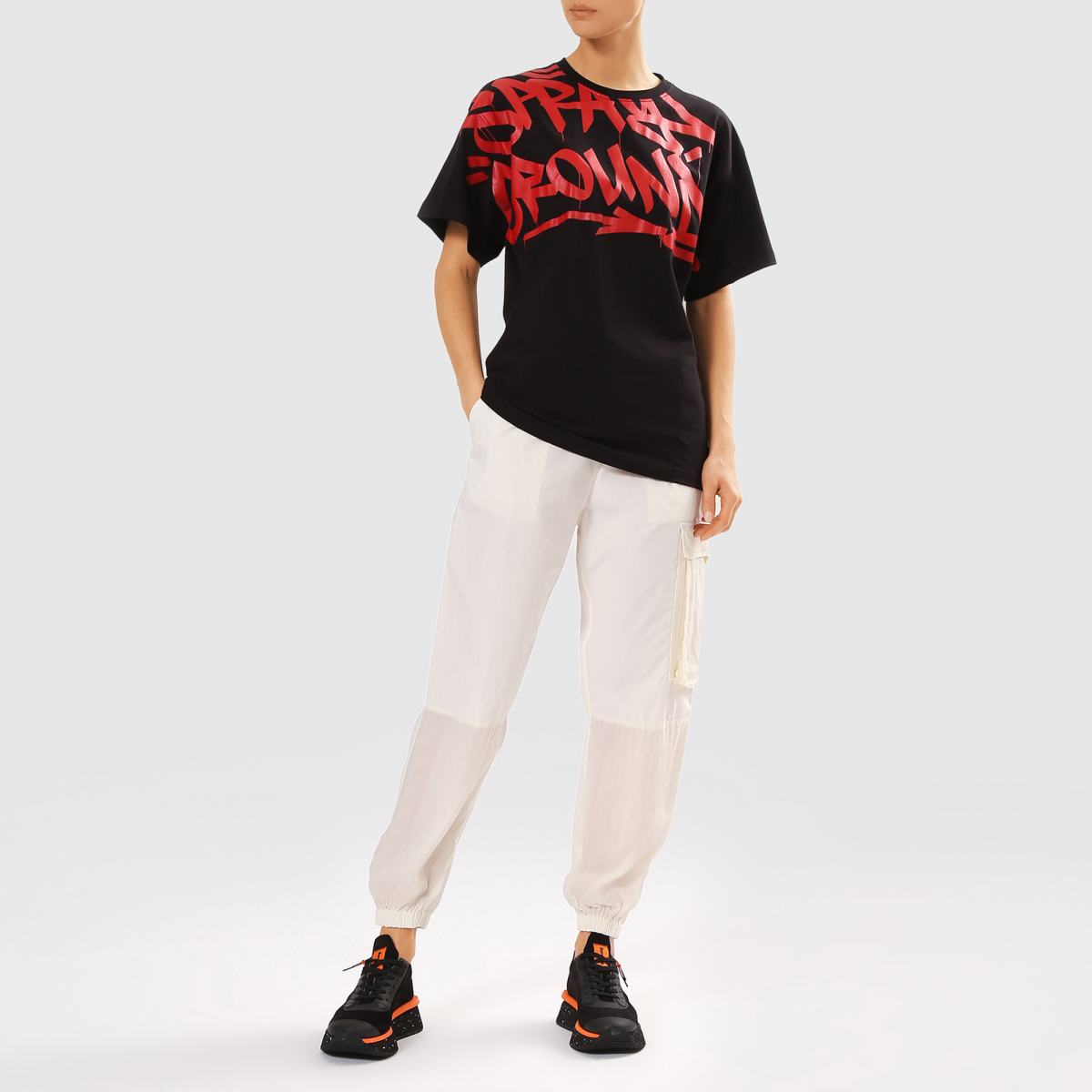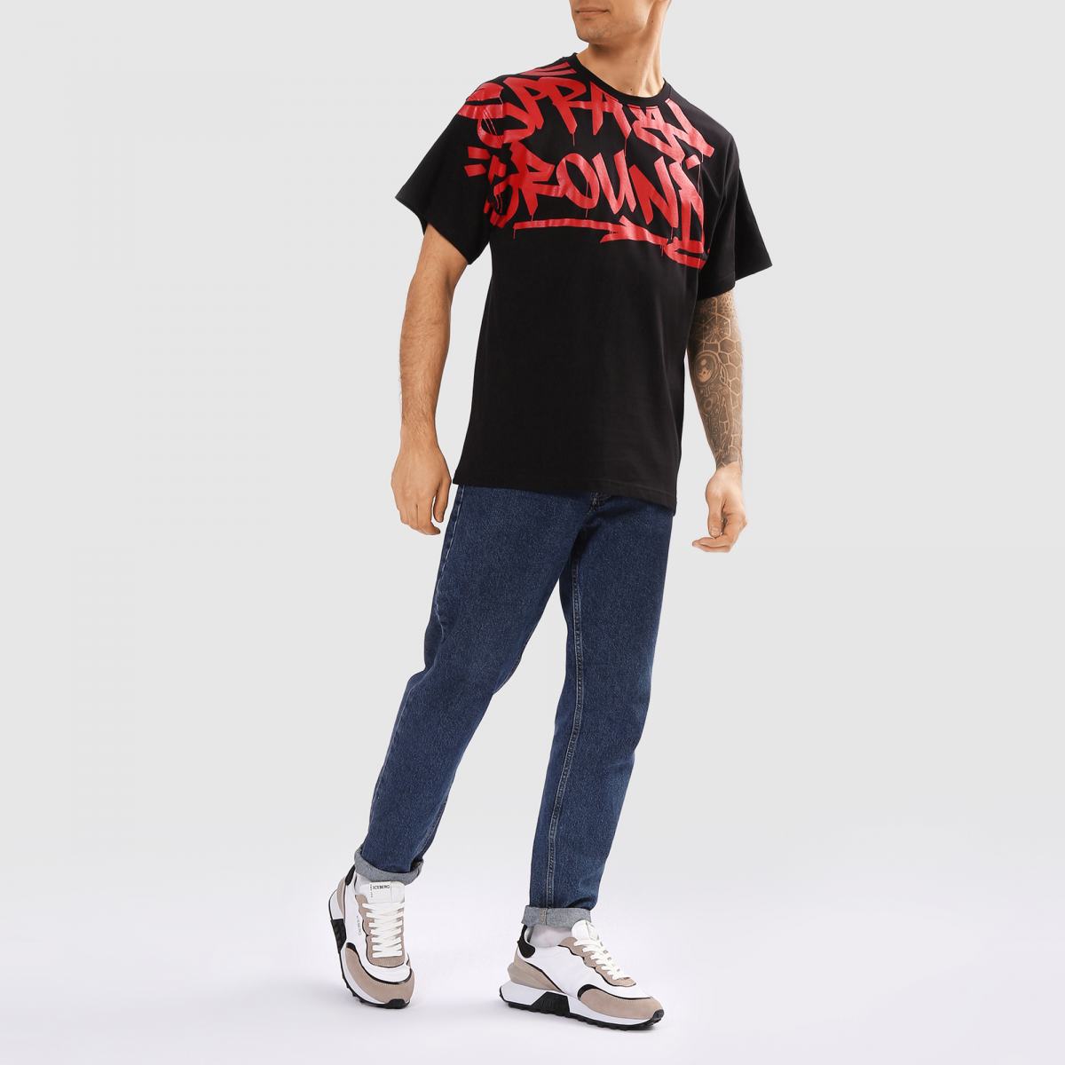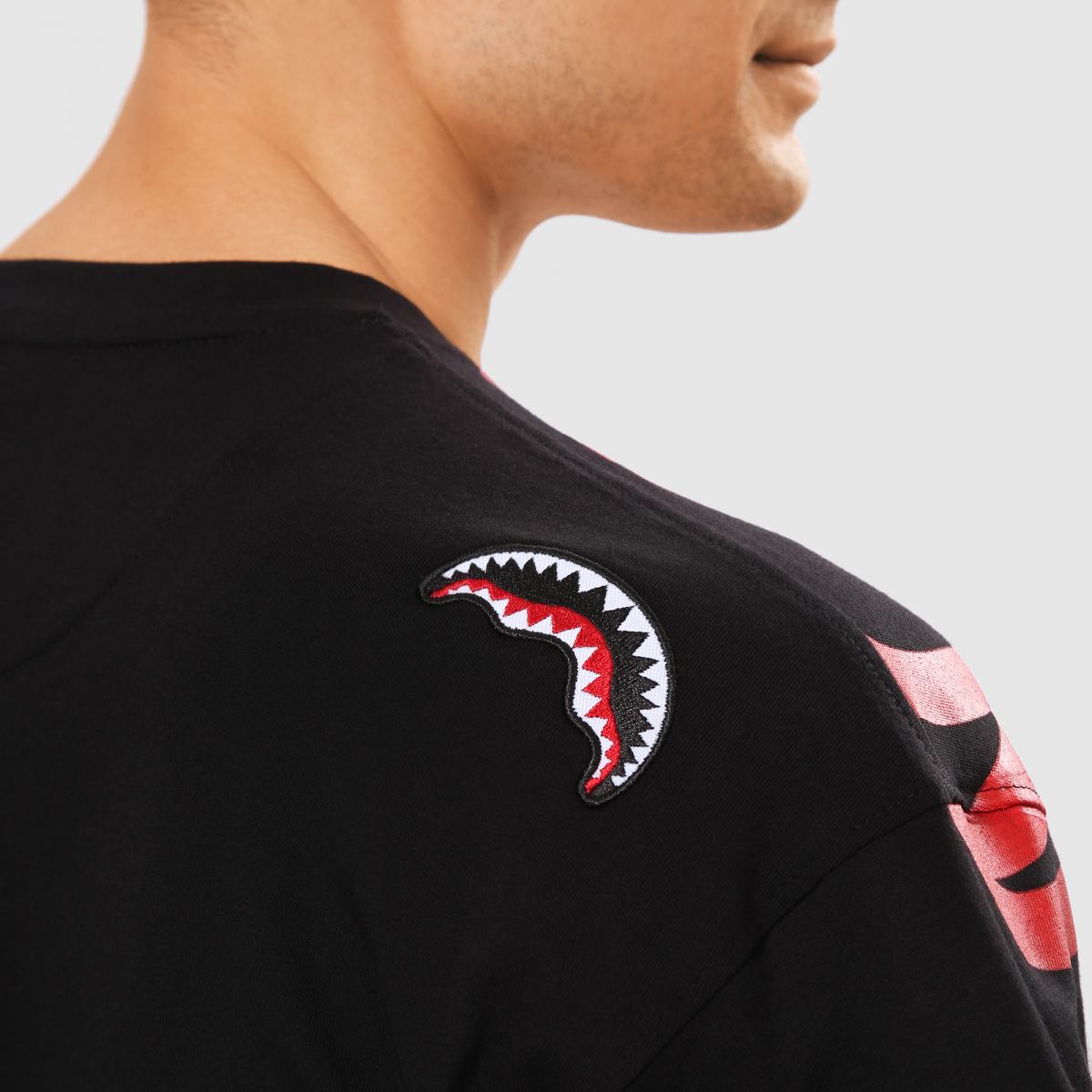 Чёрная футболка с красным принтом от SPRAYGROUND поможет создать трендовый образ. Модель выполнена из 100% хлопка, спереди украшена аппликацией, а сзади — вышивкой с фирменной пастью акулы. Свободный крой и средняя длина идеально подойдёт как для парней, так и для девушек. Футболку легко сочетать с любым низом.