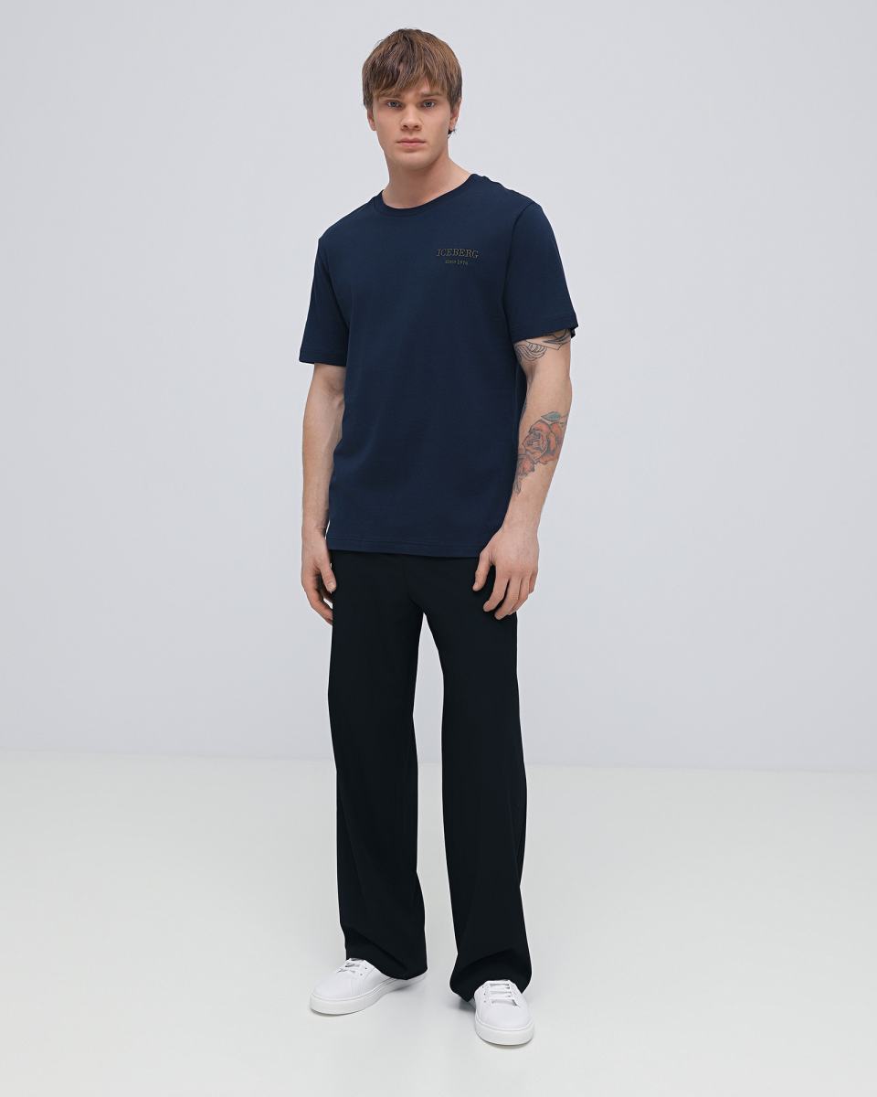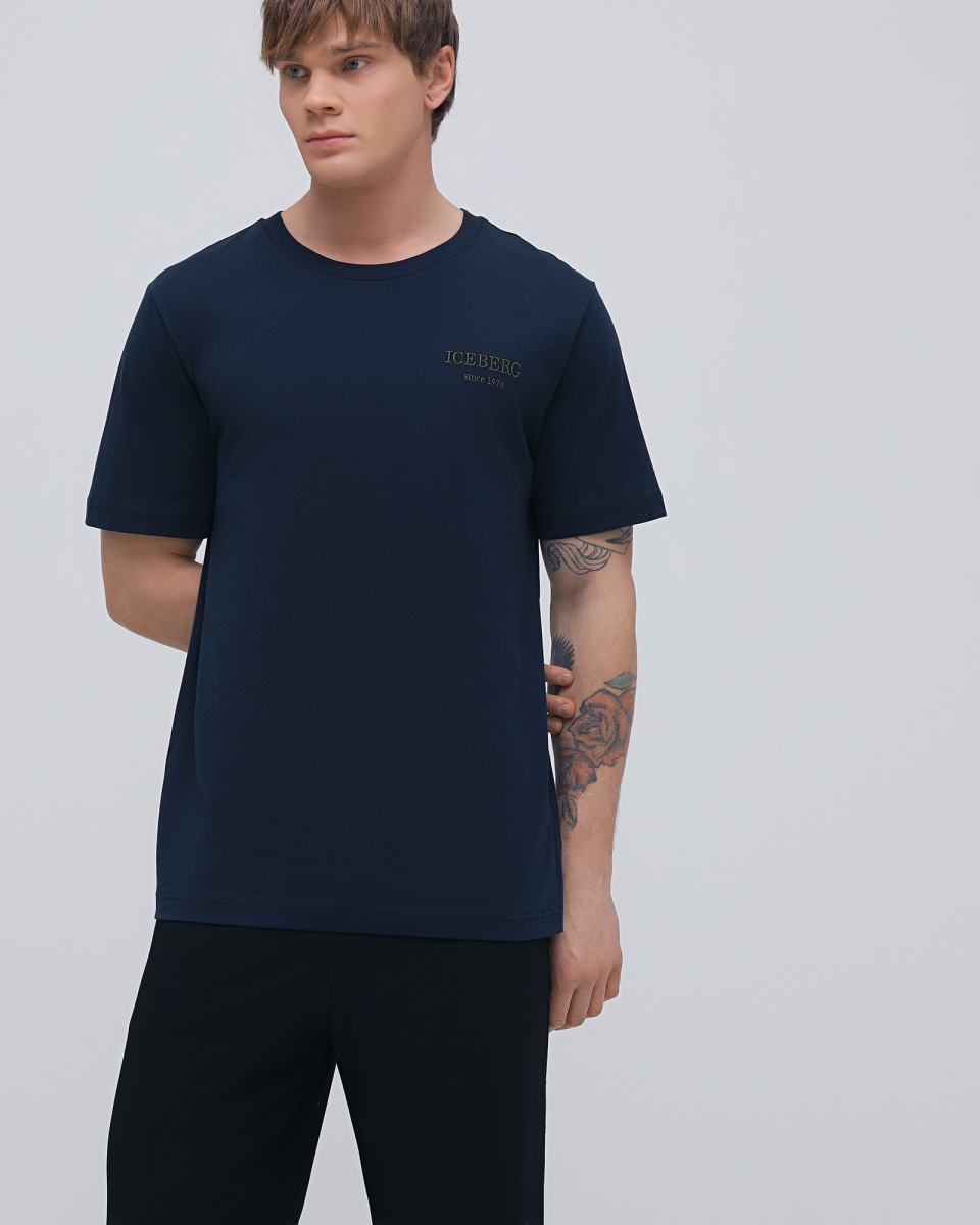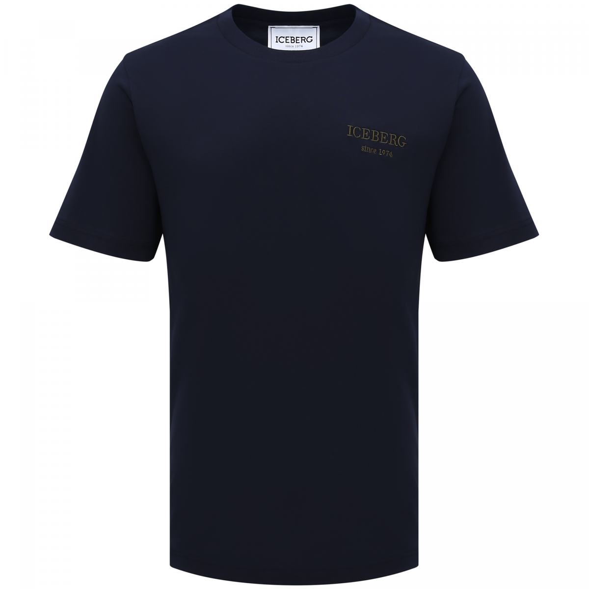 Тёмно-синяя футболка от Iceberg. Футболка с короткими рукавами выполнена из хлопкового трикотажа с вышитым логотипом Iceberg в тон на левой груди. Регулярная посадка.