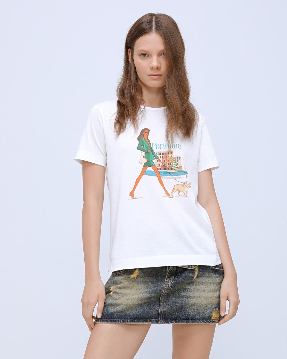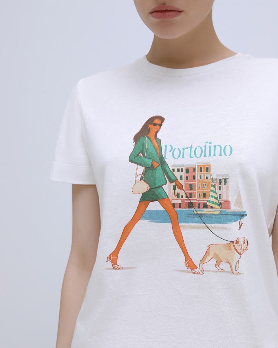 Футболка Principe di Bologna в кремовом цвете легко впишется в базовый гардероб. Модель выполнена из 100% хлопка и дополнена оригинальным принтом. Прямой крой и длина позволят носить футболку и навыпуск, и в заправленном виде. Сочетайте модель с юбками разной длины, а также с брюками разных фасонов.