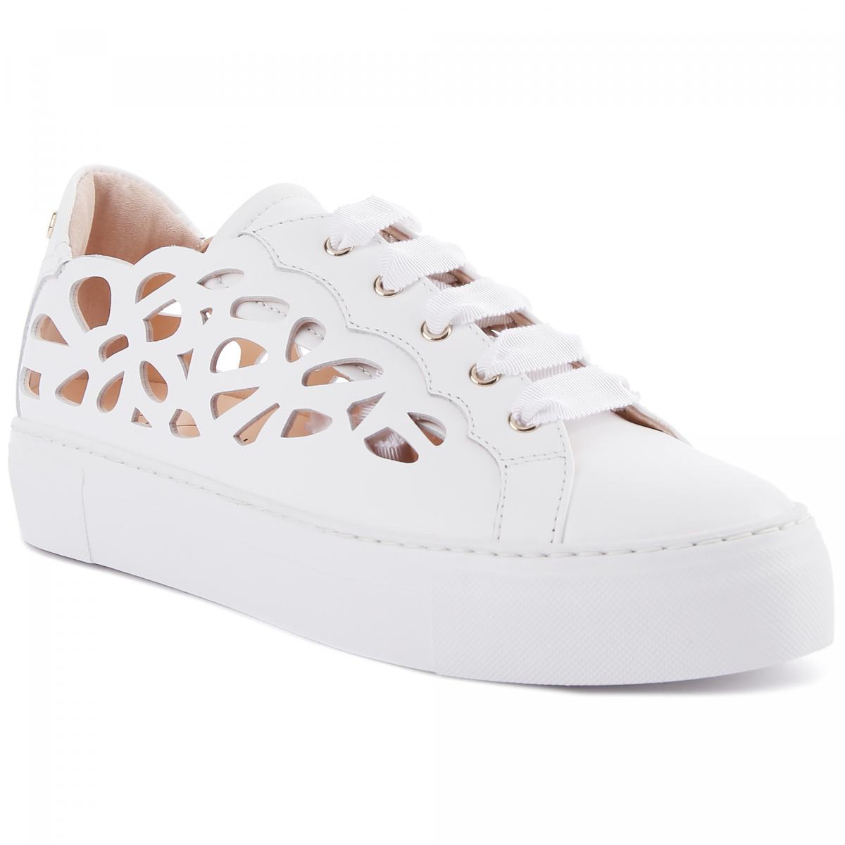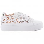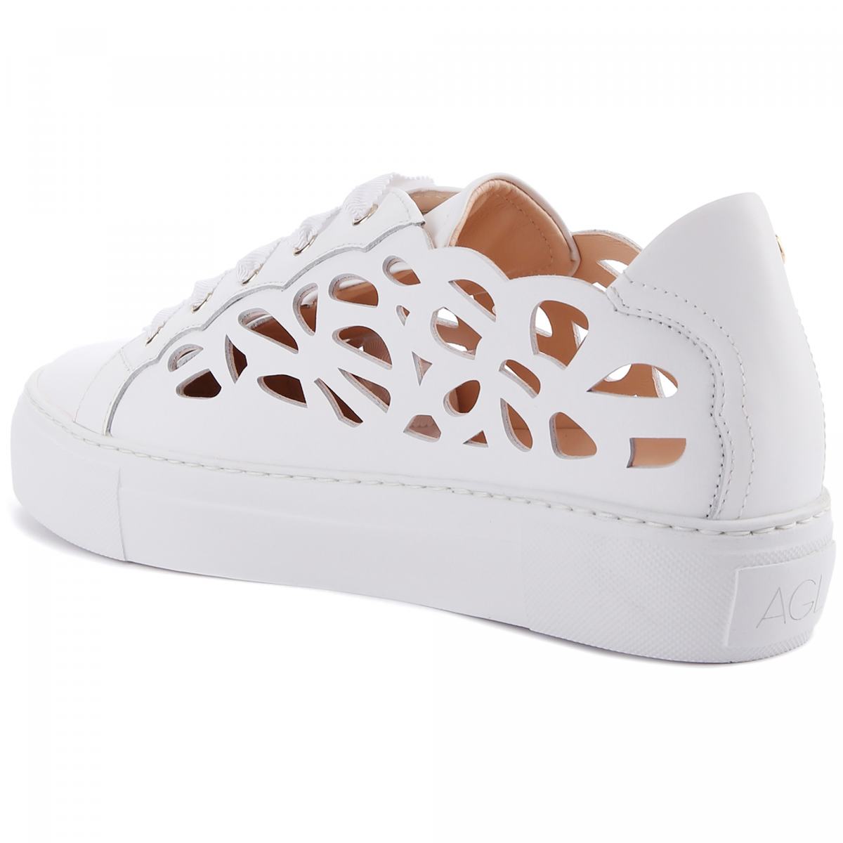 Эксклюзивная кожа с лазерной обработкой придаёт этим кедам от AGL изысканный изящный вид. Узор, напоминающий кружево, характерен для традиционного итальянского ремесла. Сестры Джусти часто опираются на архивы компании и семейные воспоминания, чтобы создавать свои уникальные модели. Лёгкая подошва из резины, комфортная стелька из натуральной кожи.