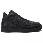 Высокие кеды в чёрном цвете из шерстяной ткани и натуральной кожи из зимней коллекции Aldo Brue. В этих утеплённых кедах можно отправится на прогулку по городу, или в офис, если требования вашей компании не слишком строги. Внутри подкладка и стелька из натуральной овечьей шерсти. Подошва выполнена из резины и дополнена нескользящим протектором.