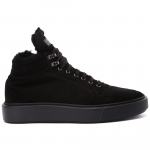 Утеплённые кроссовки из зимней коллекции Renzo Mercuri. Базовые чёрные кроссовки подойдут к любой одежде и ситуации, они универсальны и практичны. Пара выполнена из натуральной мягкой замши. Сбоку расположена застёжка на молнию. Подошва выполнена из резины, подкладка и стелька - из натурального меха.