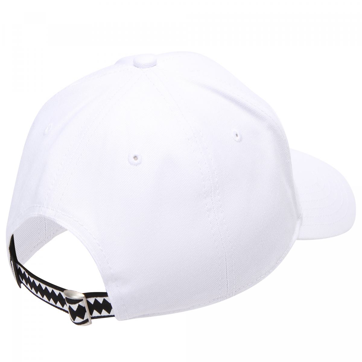 Белая кепка из плотной ткани от SPRAYGROUND. Кепка выполнена из 100% хлопковой ткани. Спереди фирменная нашивка в виде пасти акулы. Посадка регулируется с помощью застёжки с кнопками.