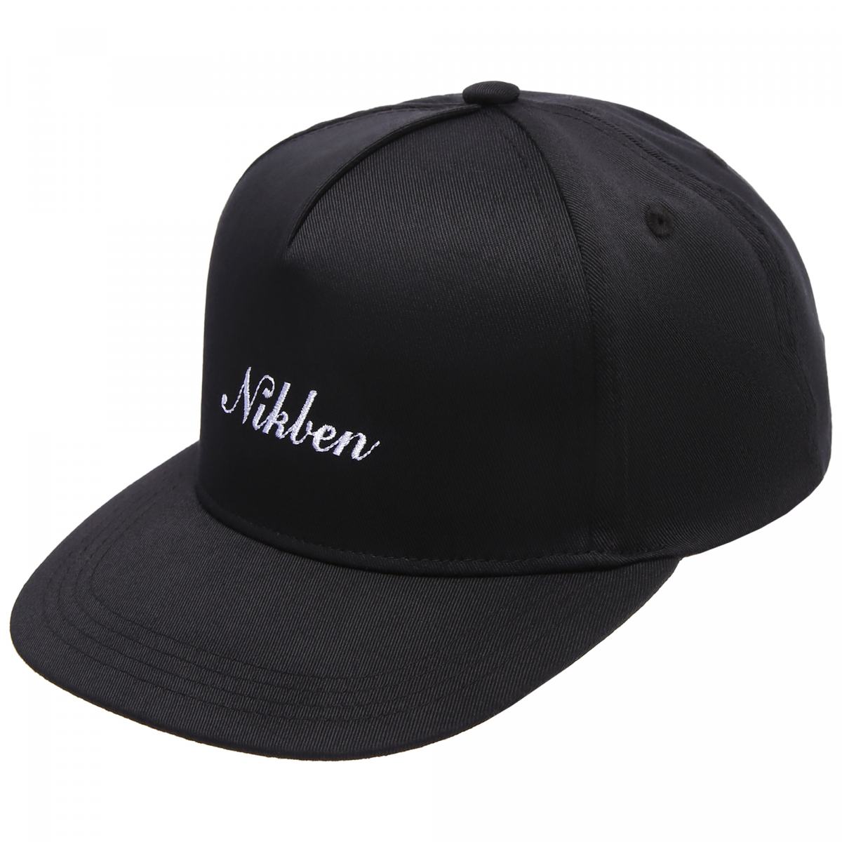 Чёрная кепка от Nikben. Кепка в базовом чёрном цвете из хлопковой ткани. Спереди фирменная вышивка Nikben. Посадка регулируется с помощью застёжки с кнопками сзади.