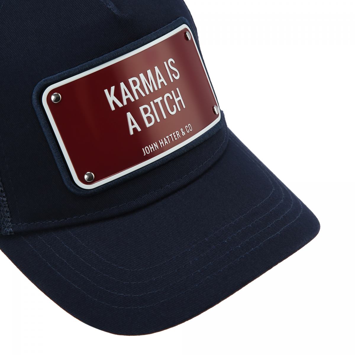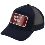 Кепка в тёмно-синем цвете от John Hatter&Co. Аксессуар, способный подчеркнуть любой образ. Кепка выполнена из плотной ткани спереди и ткани-сетки сзади. Табличка с текстовым принтом служит акцентом дизайна. Регулировать размер можно с помощью застёжки на кнопки.