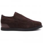 Кроссовки из натуральной замши от Aldo Brue. Комфортная пара на каждый день, которая согреет вас в холодные дни. Верх выполнен из натуральной замши тёмно-коричневого цвета, с усиленным задником из гладкой кожи. Пару без шнуровки легко и удобно надевать и снимать. Внутри меховые подкладка и стелька, подошва с нескользящим протектором выполнена из резины.