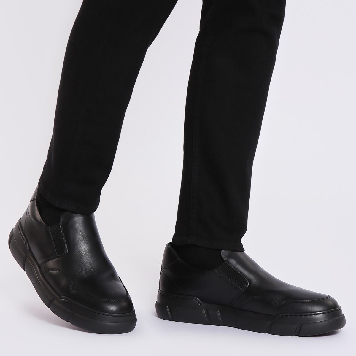 Кроссовки из чёрной кожи от итальянского бренда Baldinini. Удобная и практичная пара кроссовок без шнуровки прекрасно дополнит спортивные и повседневные образы. Кроссовки выполнены из гладкой кожи, спереди эластичные текстильные вставки. Высокая подошва выполнена из резины и надёжно защитит ноги от влаги. Внутри утеплённые подкладка и стелька из натурального меха.