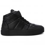 Высокие кроссовки из чёрной кожи от VIC MATIE'. Пара выполнена из натуральной кожи, на высокой резиновой подошве. Дизайн подчёркивает вертикальная строчка и дополнительная застёжка на липучку на голенище. Внутри кожаная подкладка и тёплая стелька из натурального меха.