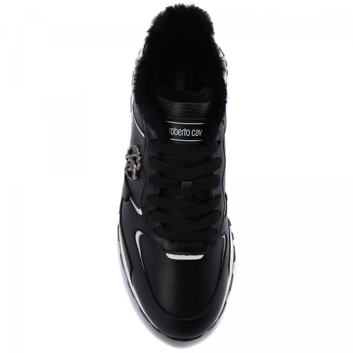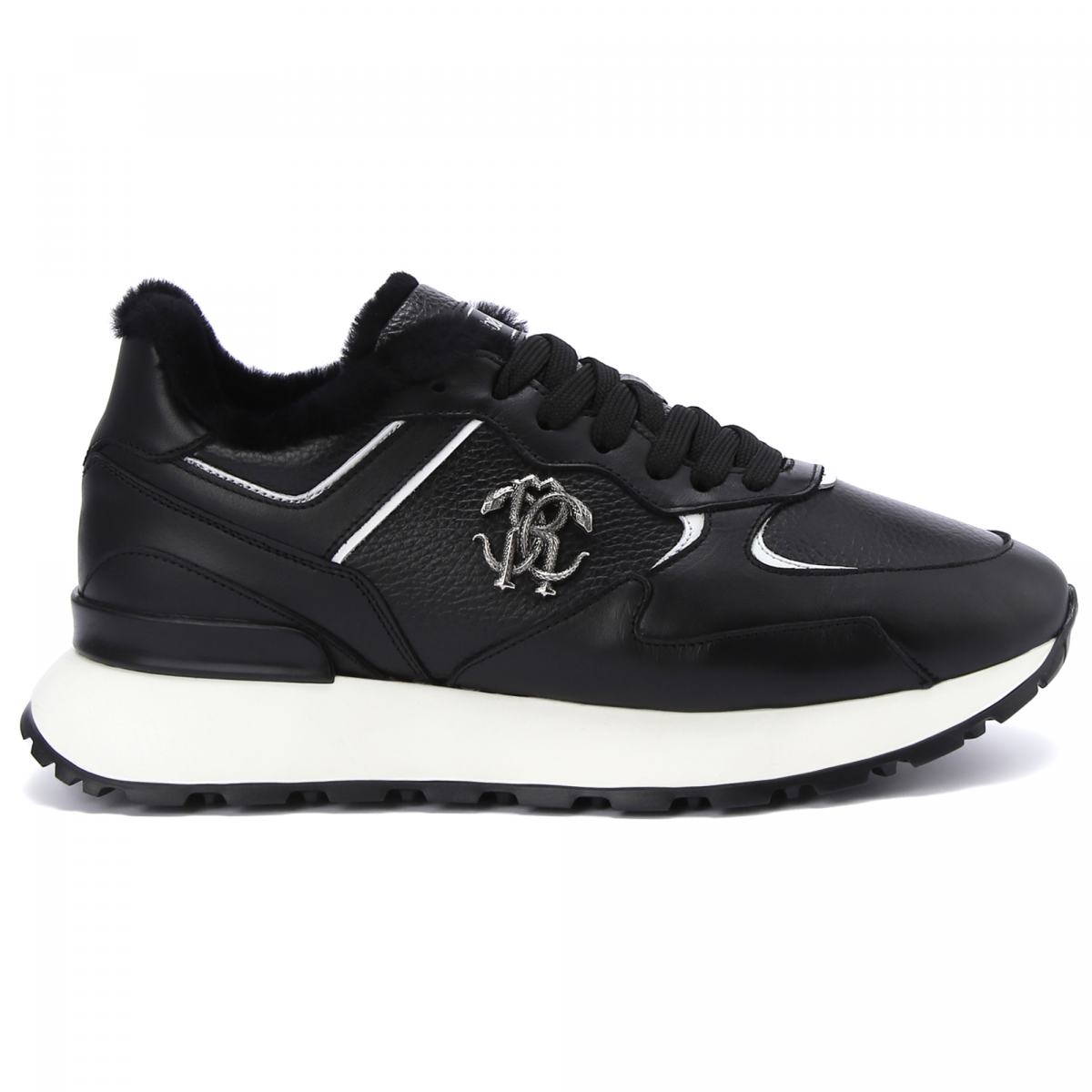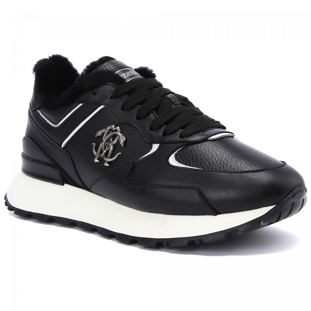 Кроссовки в чёрном цвете от Roberto Cavalli. Кроссовки с верхом из натуральной кожи со спортивным силуэтом украшены фирменным логотипом сбоку. Простая, но изысканная обувь, которая подойдёт как к городскому, так и к спортивному стилю. Подошва выполнена из резины, подкладка и стелька утеплены натуральным мехом.