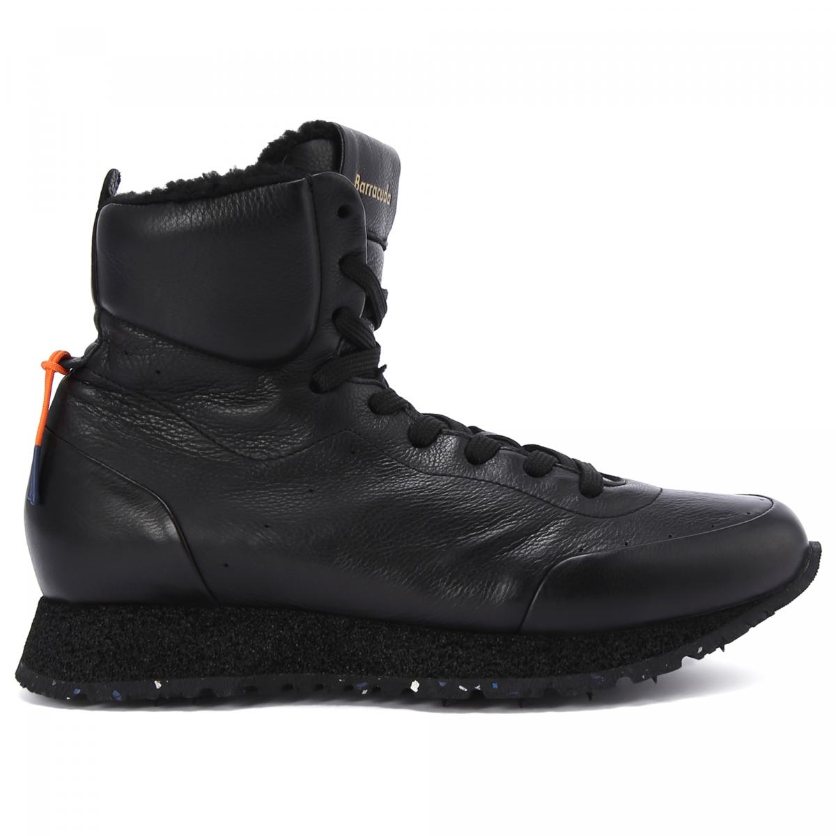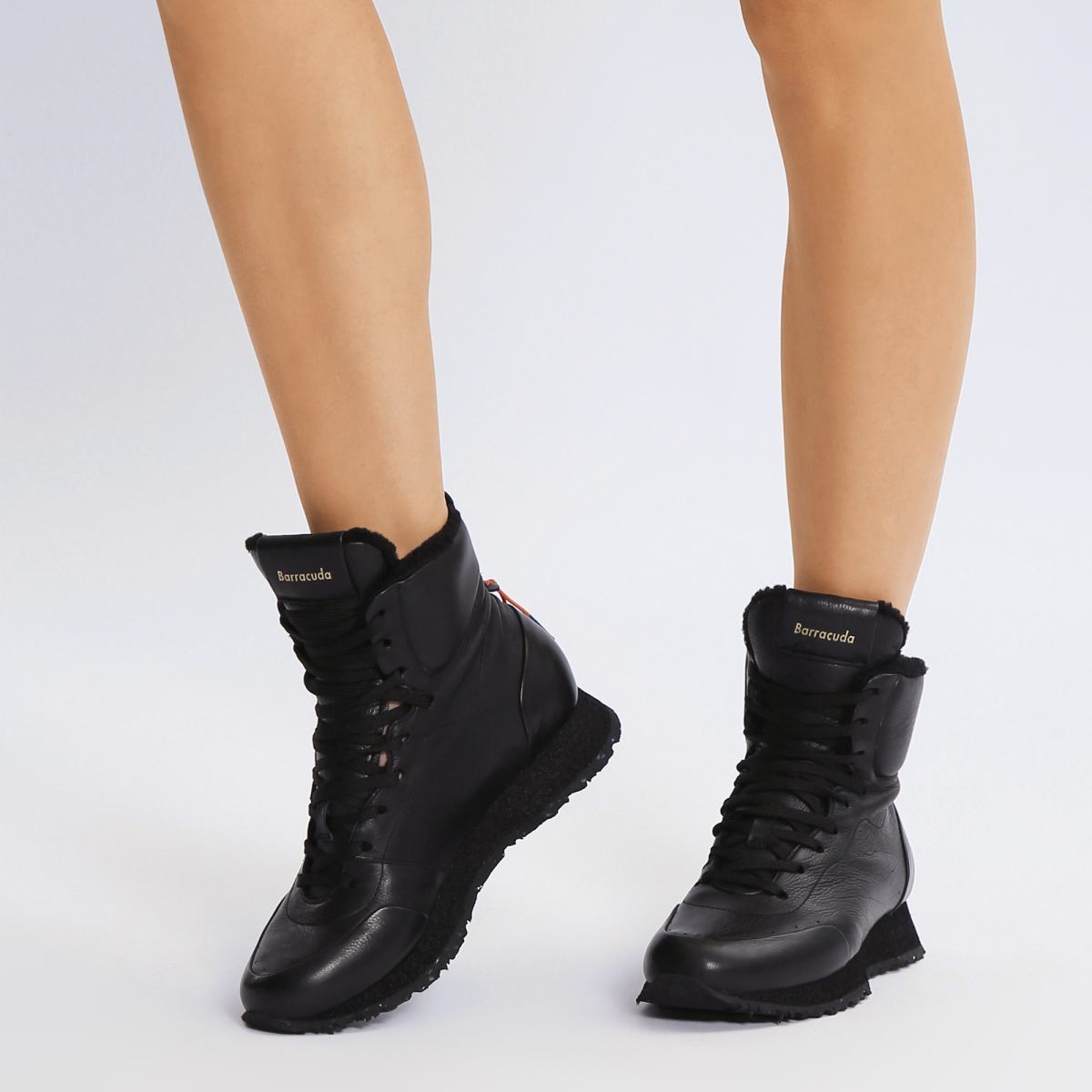 Кроссовки из натуральной кожи в чёрном цвете от Barracuda. Высокие кроссовки от Barracuda дополнят динамичные образы в холодное время года. Лаконичность дизайна и инновационные материалы: подошва изготовлена из микропористого материала с протекторами из цветной переработанной резины. Внутри подкладка и стелька из натурального меха.