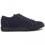 Кроссовки из ткани синего цвета от Doucal’s. Кроссовки выполнены из теплой ткани и дополнены спереди контрастной аппликацией из резины. Стелька из материала Memory Foam культового желтого оттенка Golden Cream, которая гарантирует комфорт в носке. Конструкция Ago, подошва из резины.