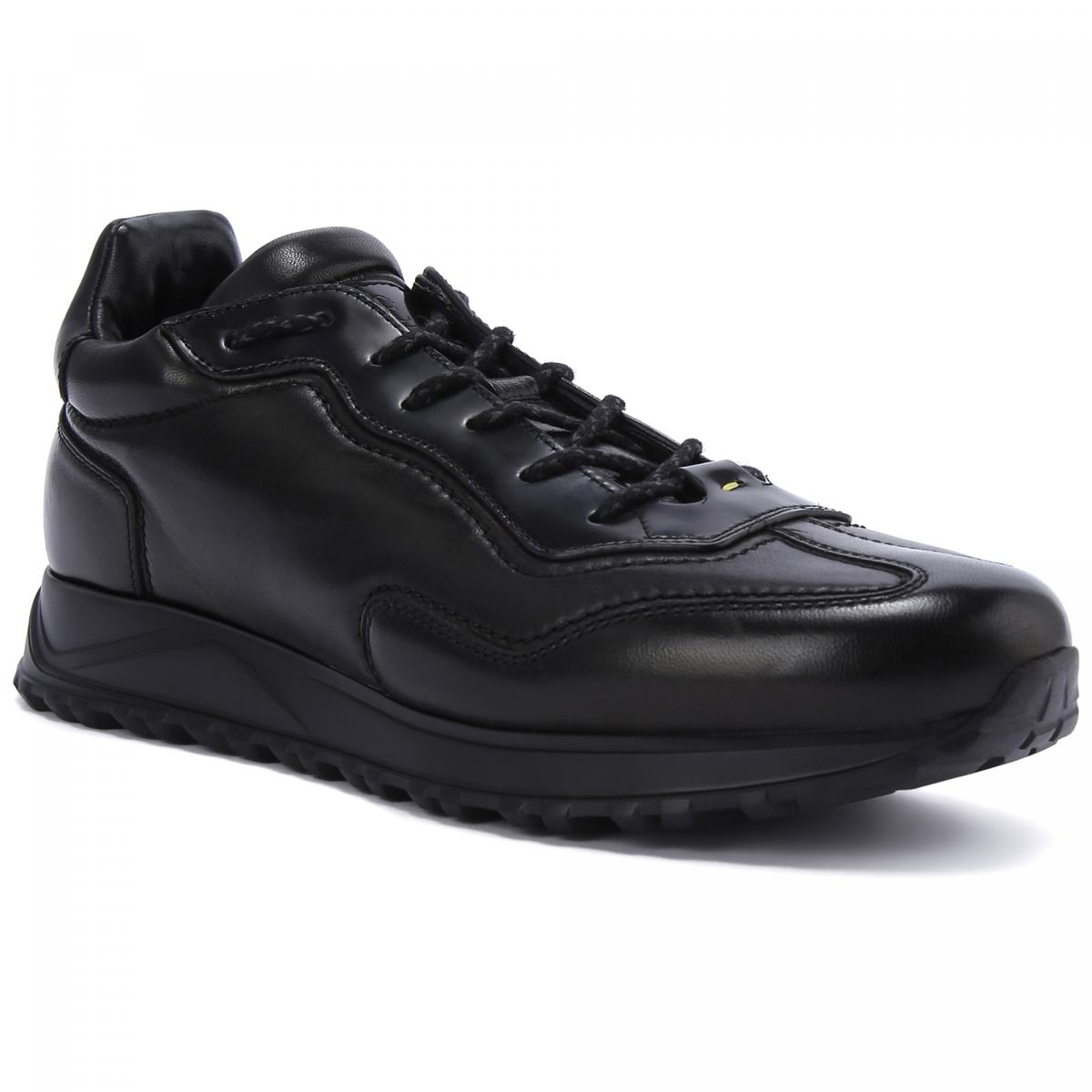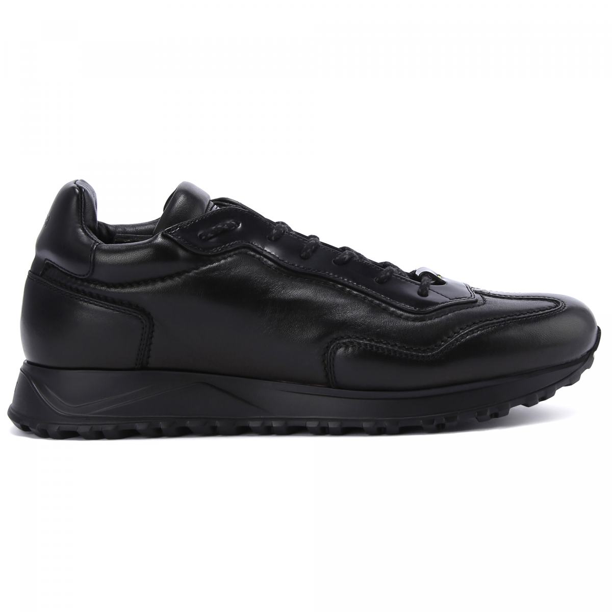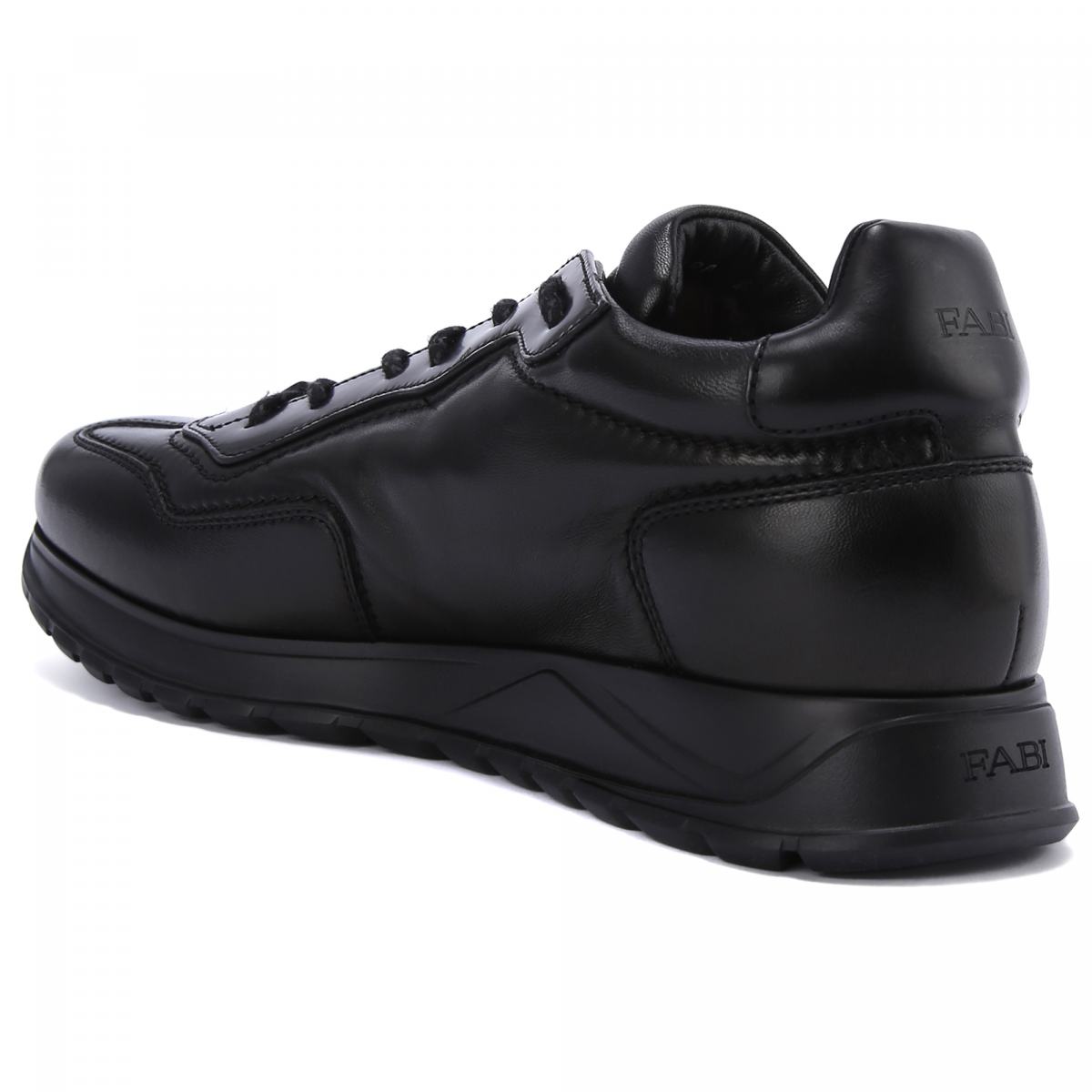 Чёрные кроссовки из натуральной кожи от Fabi. Эти кроссовки из тонкой кожи наппа представляют собой идеальное сочетание стиля и практичности. Модель характеризуется видимой строчкой, подчёркивающей ее удлинённую форму. Мягкая резиновая подошва обеспечивает комфорт при каждом шаге. Подкладка и стелька утеплённые, из натурального меха.