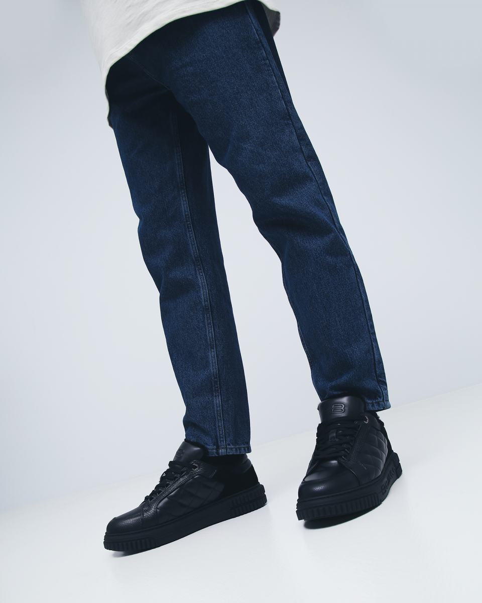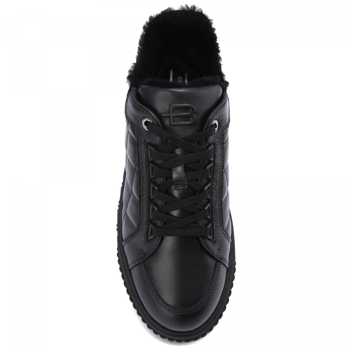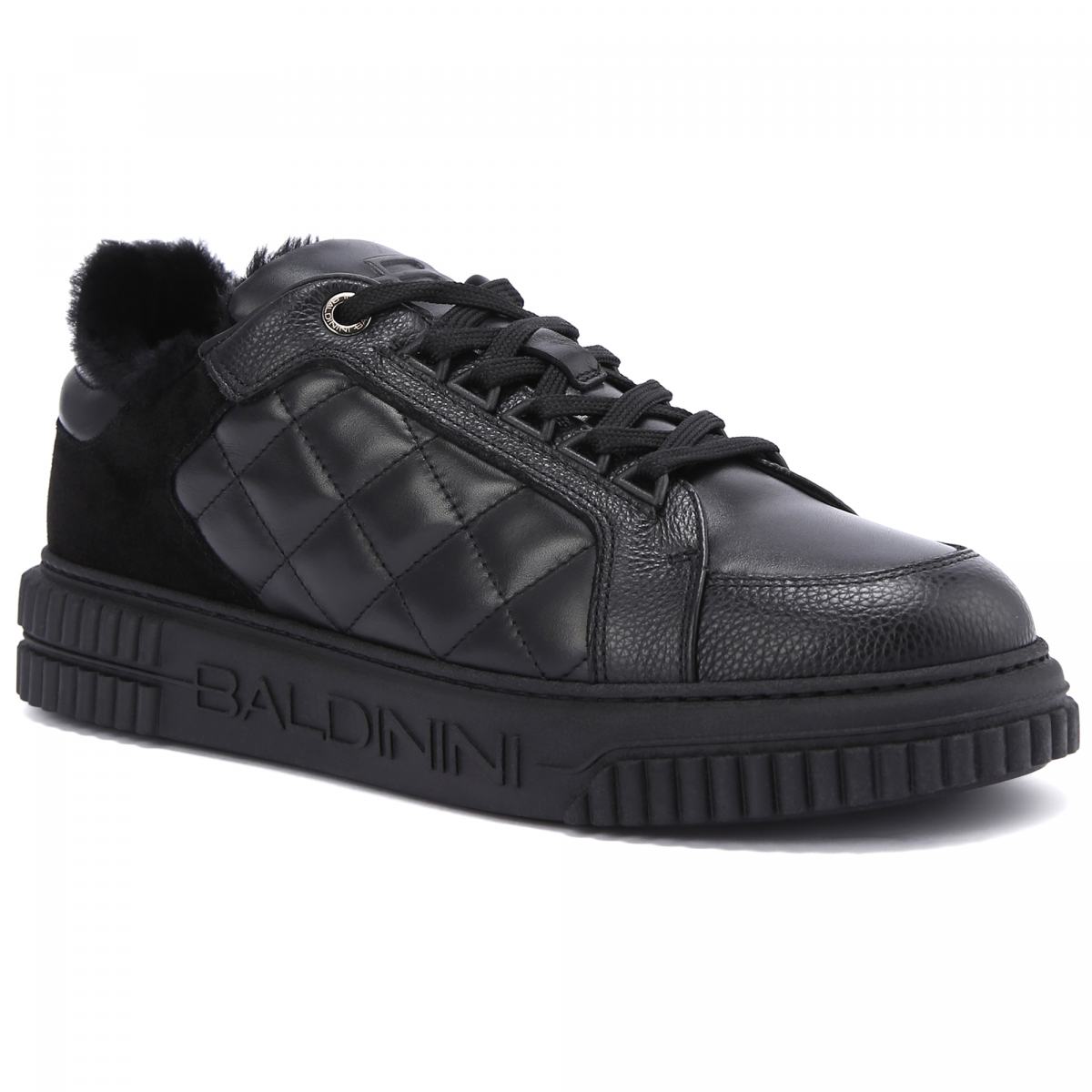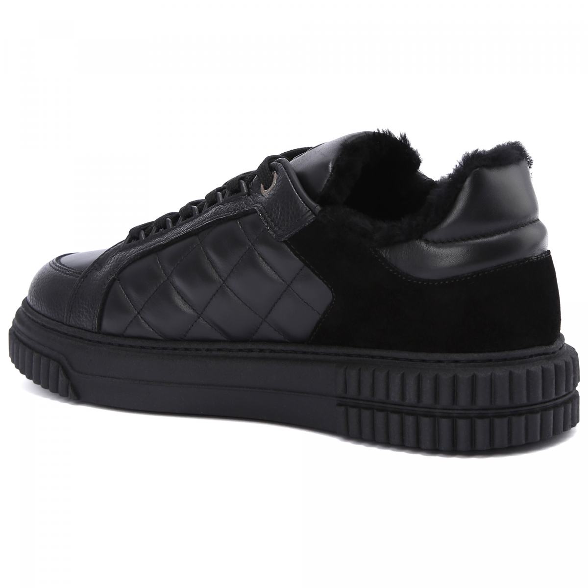 Чёрные кроссовки из натуральной кожи от Baldinini. Смелые, но сдержанные, кроссовки, чья особенность заключается стеганых деталях. Чёрная кожа контрастирует с замшевыми и меховыми вставками. Резиновая подошва с фирменным логотипом завершает образ. Внутри теплые подкладка и стелька из натурального меха.