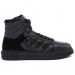 Высокие кроссовки из натуральной кожи от Baldinini. Смелые, но сдержанные, высокие кроссовки, чья особенность заключается стеганых деталях. Черная кожа контрастирует с замшевыми, текстильными и меховыми вставками. Резиновая подошва с фирменным логотипом завершает образ. Внутри теплые подкладка и стелька из натурального меха.