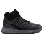 Высокие чёрные кроссовки из кожи от Baldinini. Надежные кроссовки, сочетающие в себе удобство и стиль. Сочетание замши, кожи и меховых вставок черного цвета создает игру света и тени, также, как и стеганая отделка. Резиновая подошва и фирменный логотип на язычке завершают образ. Пара с утепленной подкладкой и стелькой из меха, специально для холодного времени года.
