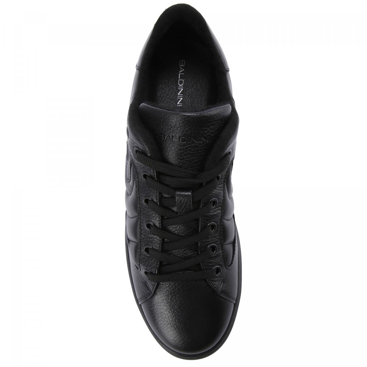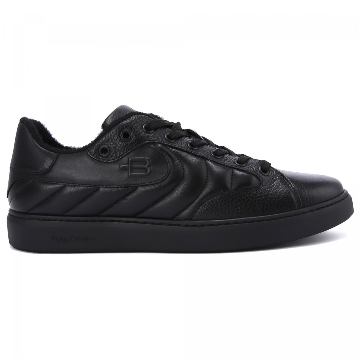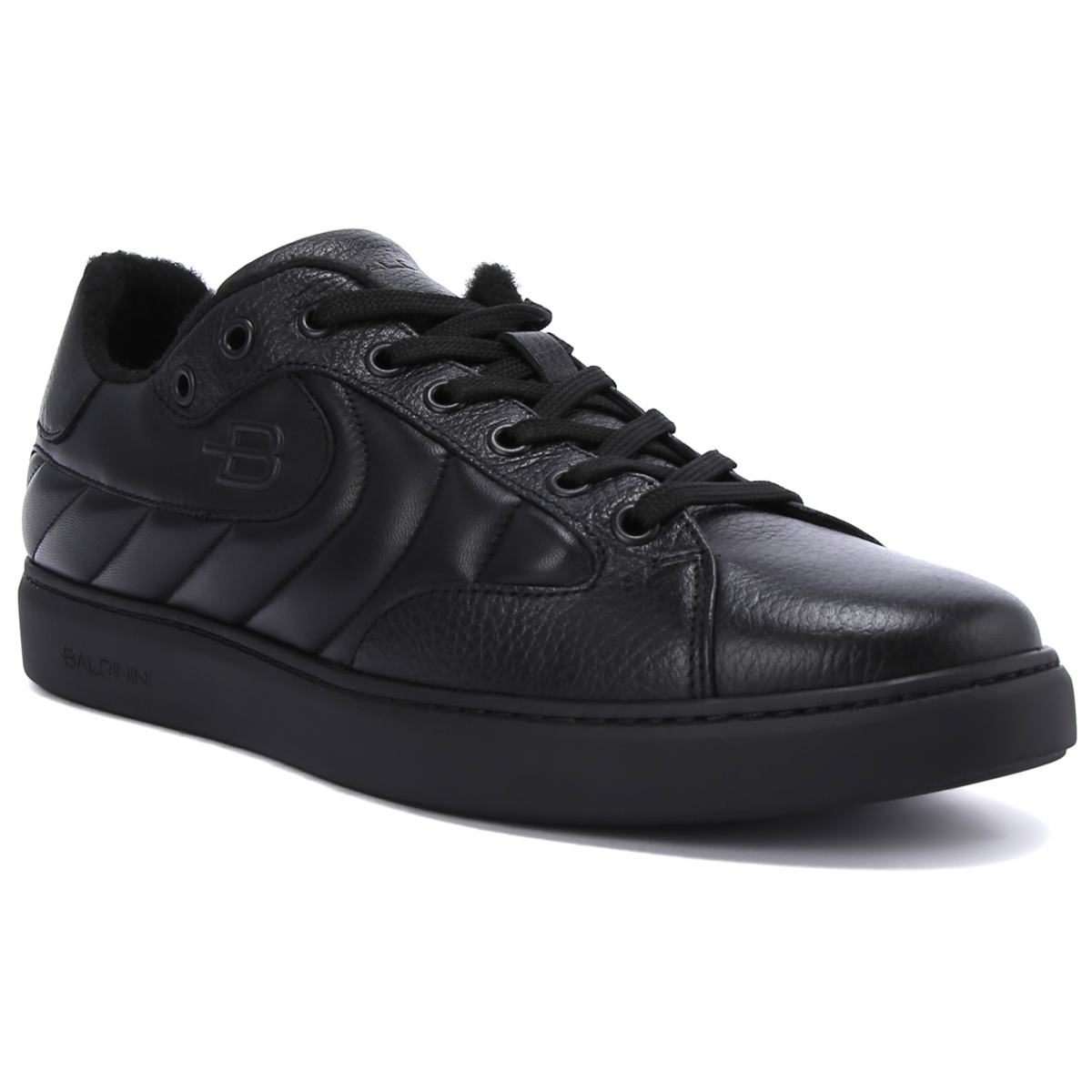 Кроссовки в чёрном цвете от Baldinini отлично впишутся в стиль casual и дополнят джинсы в любом оттенке. Модель выполнена из гладкой и зернистой натуральной кожи и украшены строчкой. Внутри шерстяной подклад и стелька из натуральной кожи, подошва — из резины. Сбоку пара дополнена вышивкой с буквой B, что не только сообщает о принадлежности к бренду, но и разбавляет дизайн.