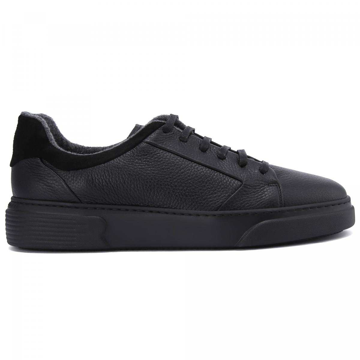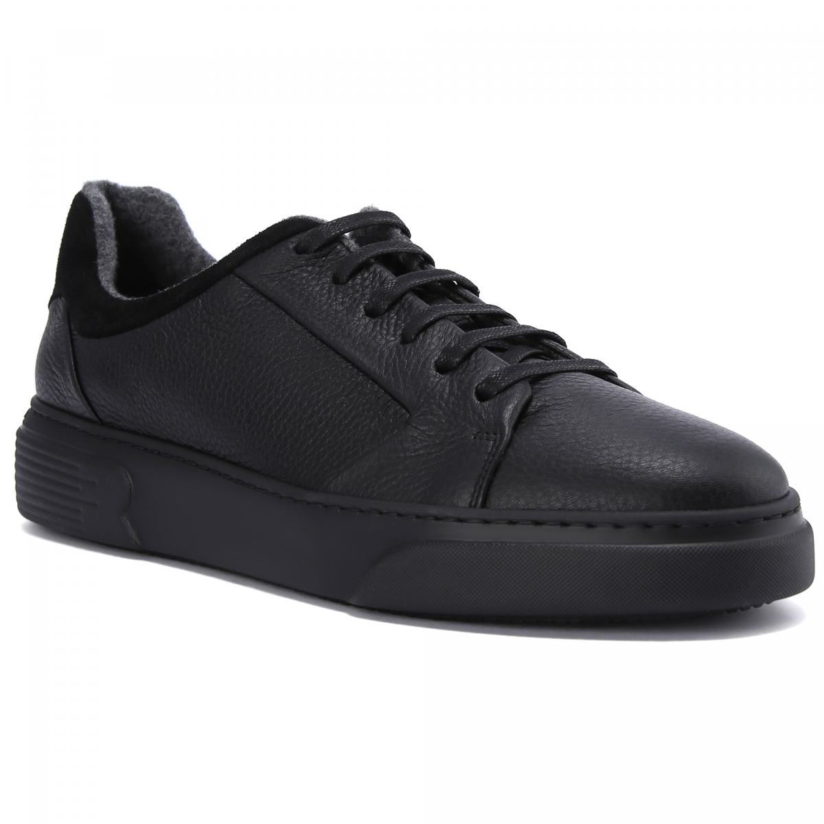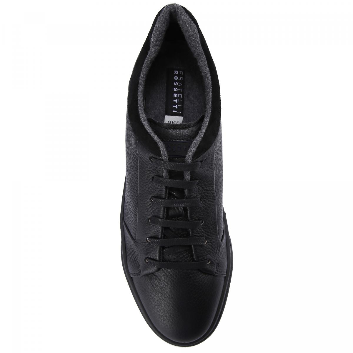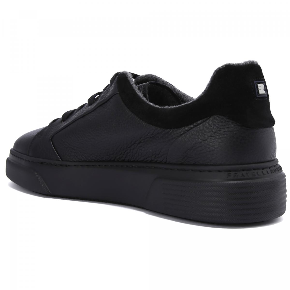 Чёрные сникеры из натуральной кожи от Fratelli Rossetti One. Сникеры в динамичном спортивном стиле изготовлены из мягкой кожи. Подошва, прикреплённая рантовым методом, изготовлена из лёгкой и гибкой резины. Пара с утепленной подкладкой и стелькой из шерсти.