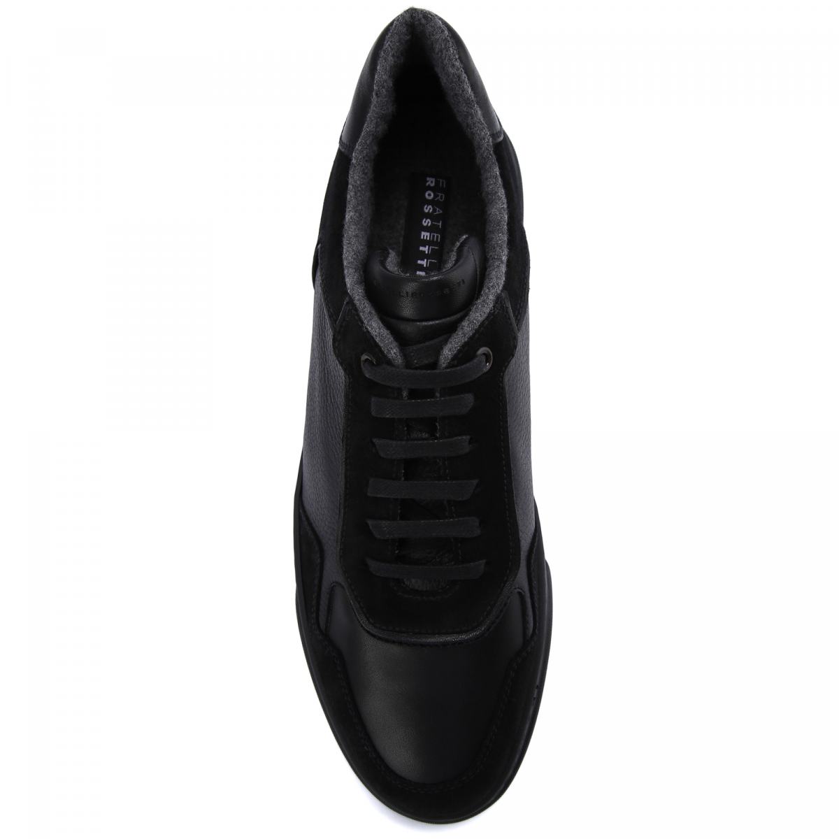 Кроссовки в черном цвете от Fratelli Rossetti One. Мастерство исполнения и стиль идеально сочетаются в этих комбинированных сникерах от Fratelli Rossetti, выполненных из мягкой кожи и замши. Съёмная дышащая внутренняя стелька и подкладка выполнены из шерсти, подошва из резины. Пара изготовлена по традиционной итальянской технологии.