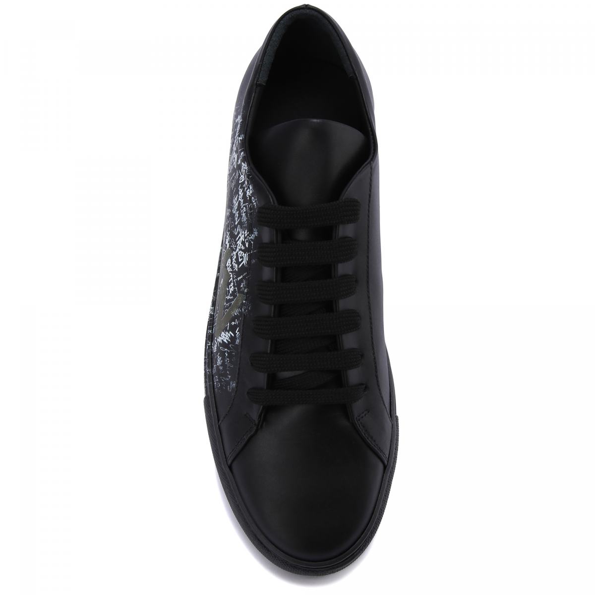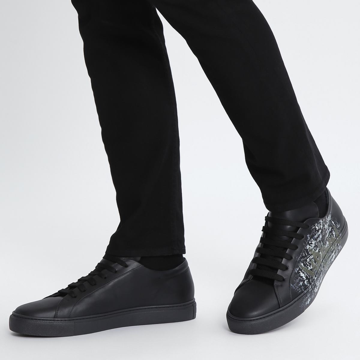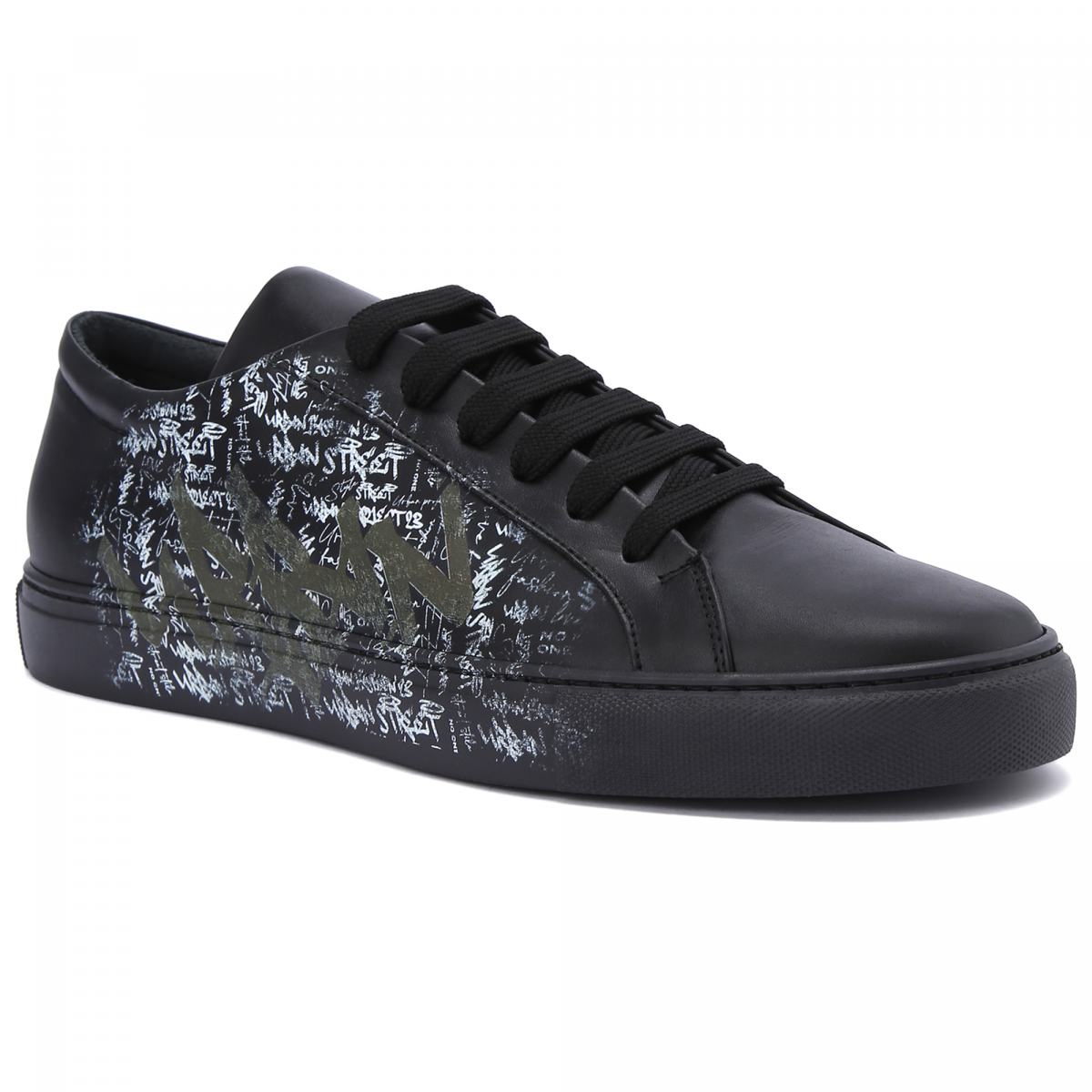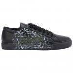 Чёрные кеды с оригинальным принтом добавят разнообразия в повседневные образы. Модель выполнена из натуральной кожи, на резиновой подошве. Внутри подклад и стелька также из кожи. Принт в виде абстрактных надписей добавляет оригинальности, при этом гармонично впишется в базовые образы.