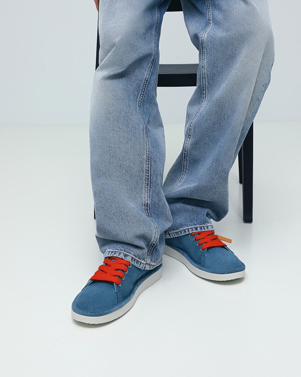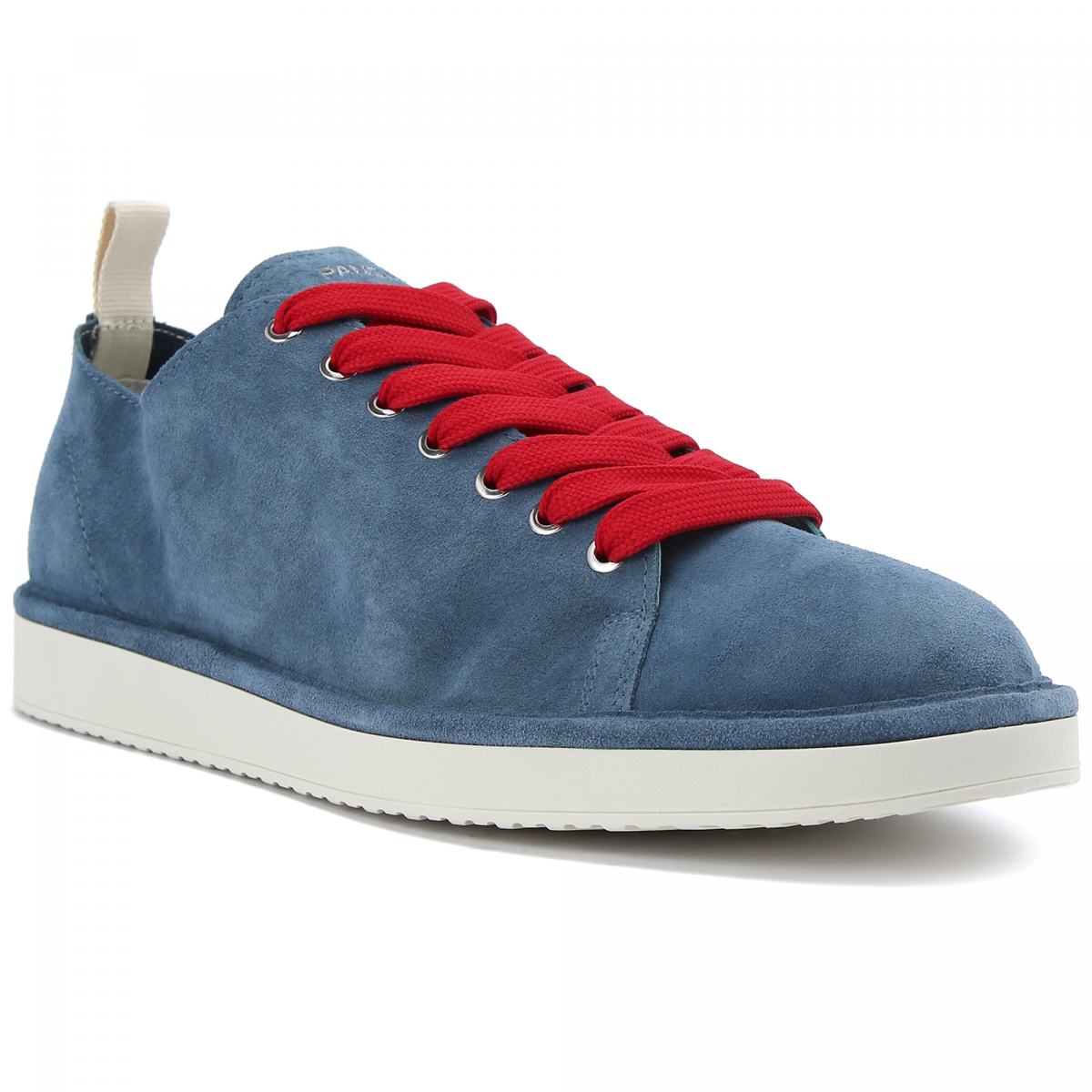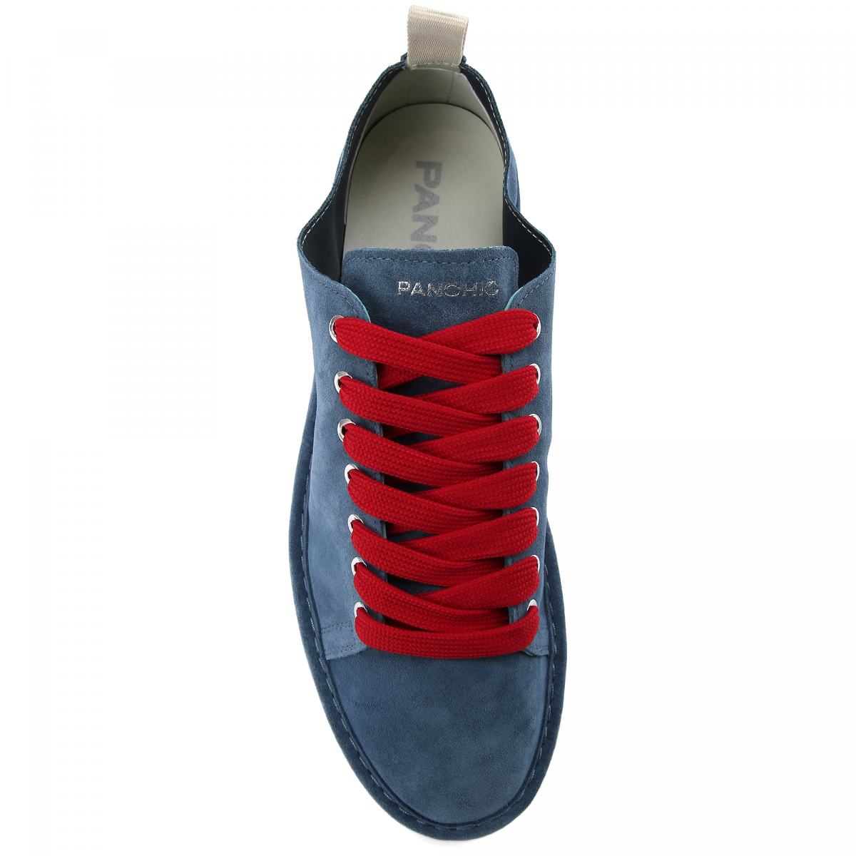 Кроссовки из натуральной замши в синем цвете от Panchic. Пара с верхом из замши, красными контрастными шнурками широкого переплетения и отделкой без подкладки. Пара из летней коллекции имеет более легкий вес, что повышает комфорт в носке. Чистые линии P01 демонстрируют идеальный баланс между дизайном и комфортом. Подошва из резины.