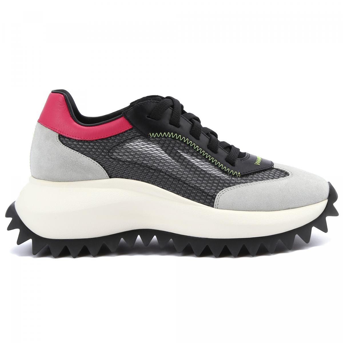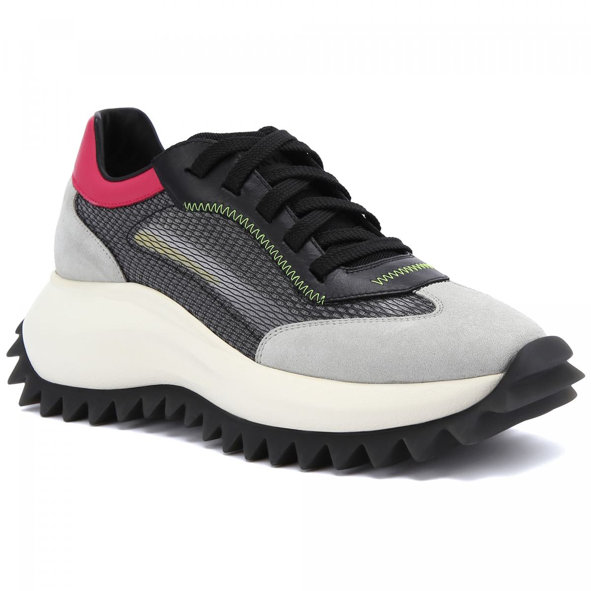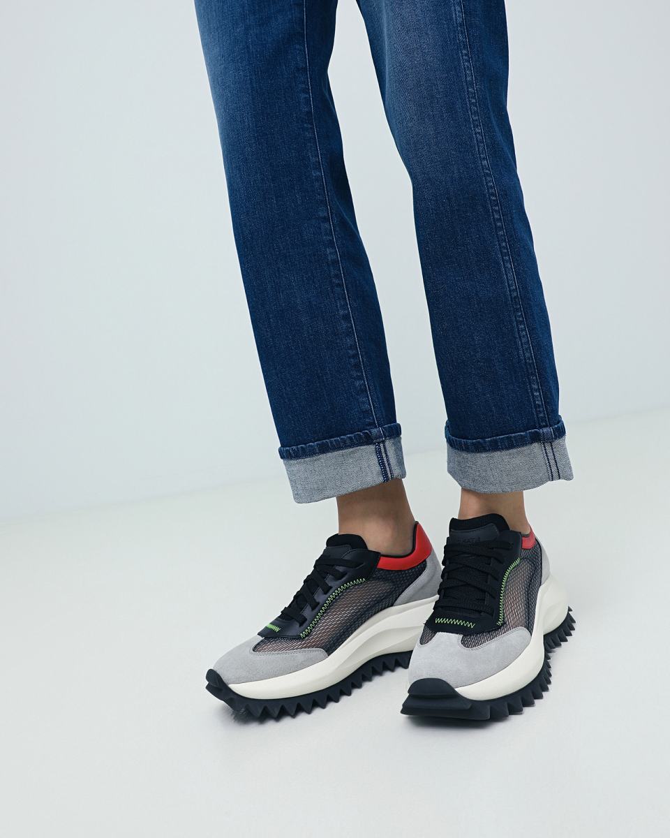 Кроссовки с текстильным верхом в сером цвете от VIC MATIE’. Пара в спортивном стиле выполнена из мягкой телячьей замшевой кожи и прозрачной сетки с контрастной строчкой. Сверхлегкая цельная подошва размера xl с резиновой вставкой и протектором с крупными шипами позволит с комфортом пройти по любой поверхности. Внутри анатомическая стелька с покрытием из чистого хлопка.