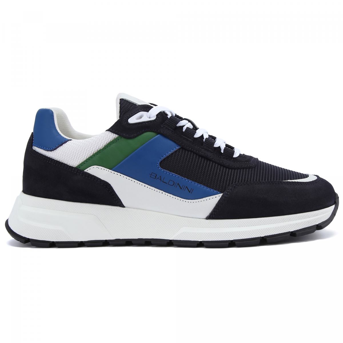 Комбинированные кроссовки в спортивном стиле от Baldinini. Добавьте динамичности своему образу с помощью этих кроссовок со смелым разноцветным дизайном. Пара выполнена из натуральной замши. гладкой кожи и текстильной сетки. Контрастная подошва придает кроссовкам современный вид и делает их идеальным выбором для непринужденного и стильного уличного образа. Напечатанный сбоку логотип завершает дизайн. Внутри текстильная подкладка и кожаная стелька.