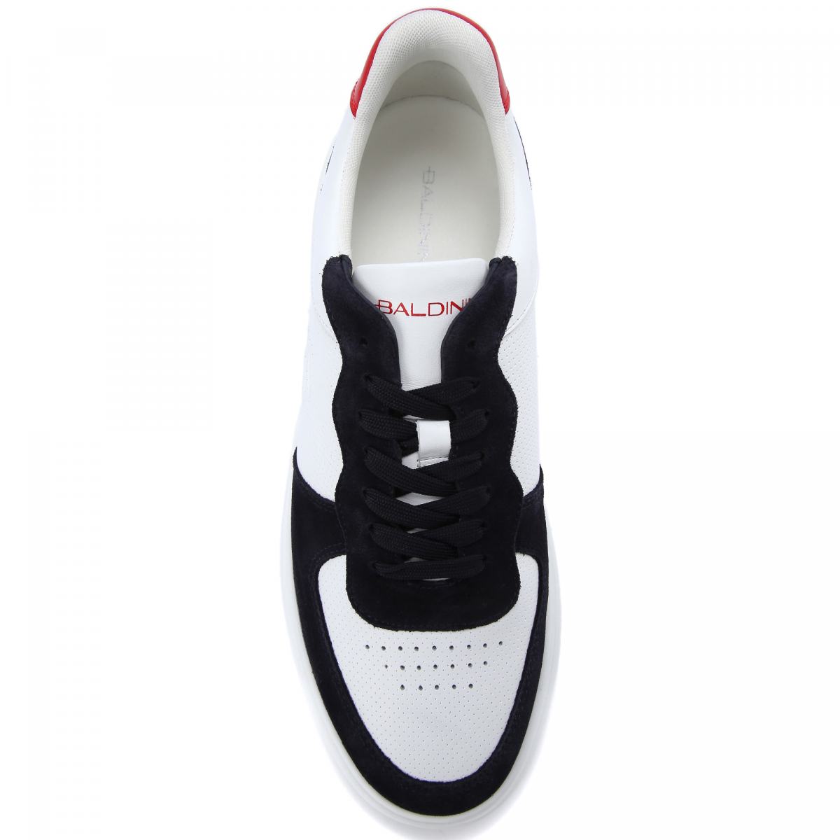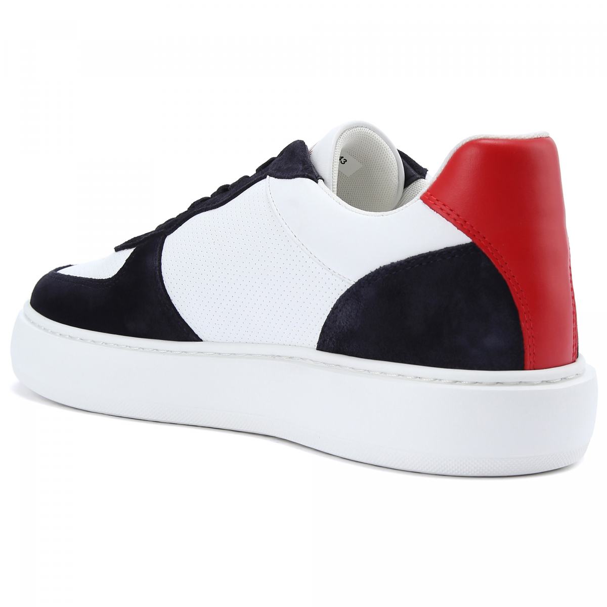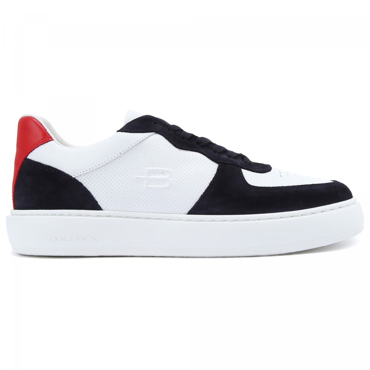 Комбинированные кеды в белом цвете от Baldinini с добавлением оттенка синего и красного станут стильным акцентом образа. Модель выполнена из натуральной кожи, со вставками из замши. Внутри текстильный подклад и кожаная стелька. Спереди и сбоку добавлена перфорация, чтобы в кедах было комфортно даже в жаркую погоду. Завершает дизайн изображение логотипа сбоку.