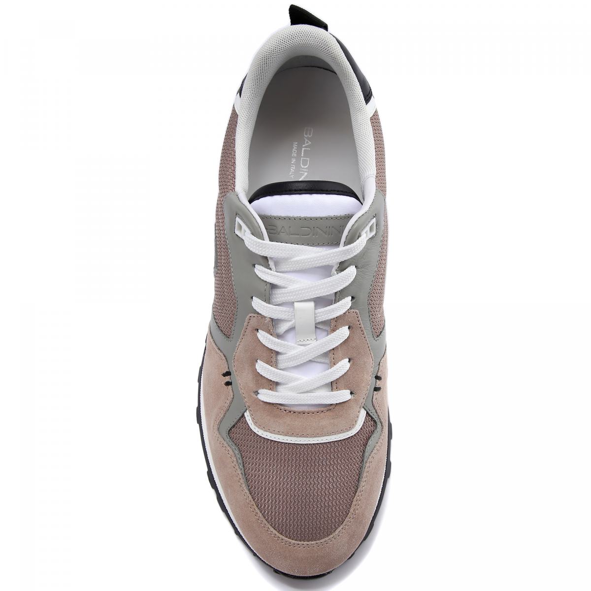 Бежевые кроссовки Baldinini с контрастными акцентами в черном и сером цветах создадут динамику в образе. Модель выполнена из текстиля, кожи и вставок из замши. Внутри текстильный подклад и кожаная стелька, подошва — из резины. Помимо цветных акцентов, дизайн дополняет вышивка сбоку в виде эмблемы бренда. Кроссовки подойдут и для занятий спортом, и для составления городских образов.