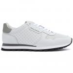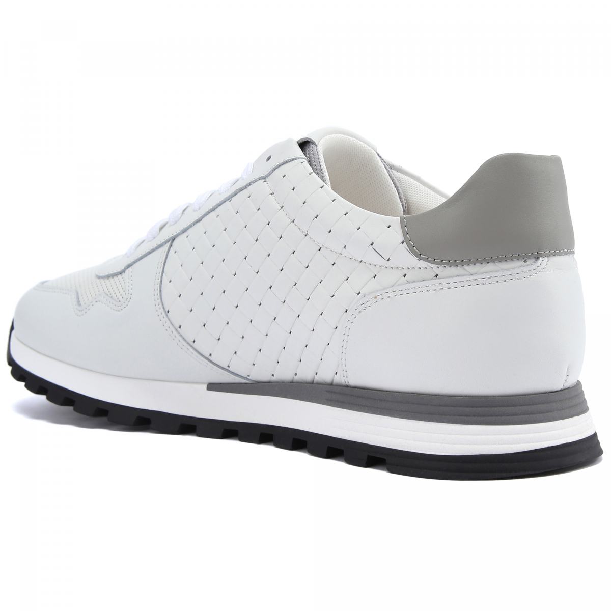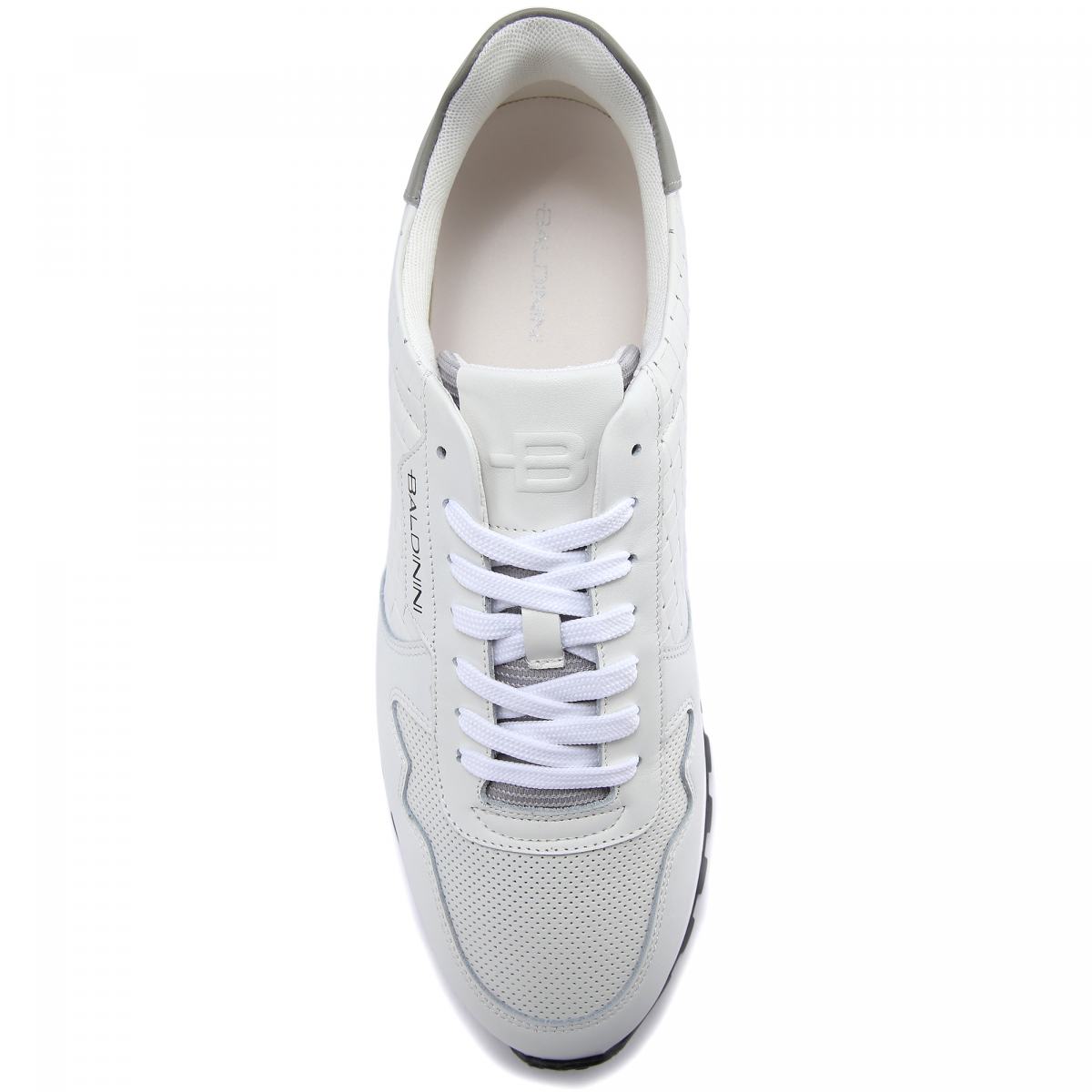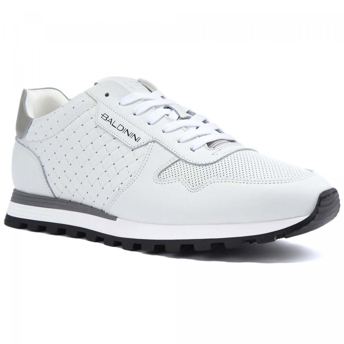 Белые кроссовки из натуральной кожи от Baldinini. Баланс комфорта и стиля стал доступен в этих черно-белых кроссовках с изысканным тканым кожаным узором. Тисненый логотип придает этой модели дополнительную элегантность, обеспечивая непревзойденный комфорт на каждом шагу. Носок со сквозной перфорацией особенно актуален для теплого времени года. Текстильная шнуровка, практичная резиновая подошва, текстильная подкладка и кожаная стелька.