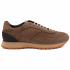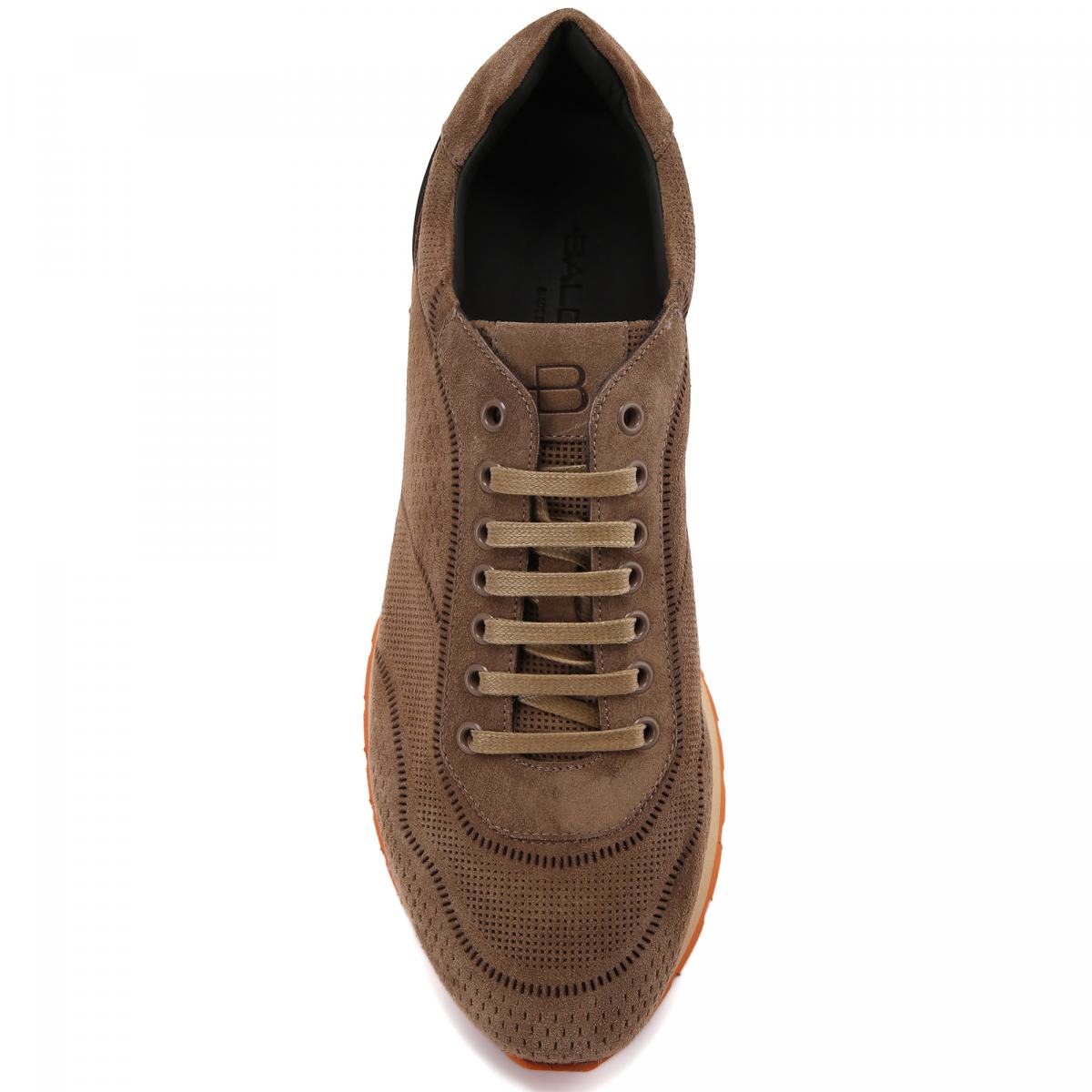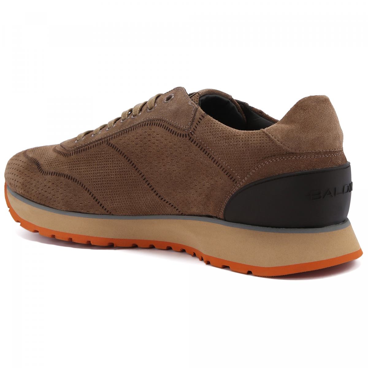Кроссовки из замши в коричневом цвете от Baldinini. Кроссовки из натуральной замши с узором-перфорацией в стиле sporty-chic станут идеальной повседневной парой. Толстая резиновая подошва обеспечивает комфорт. Внутри подкладка и стелька из натуральной кожи.