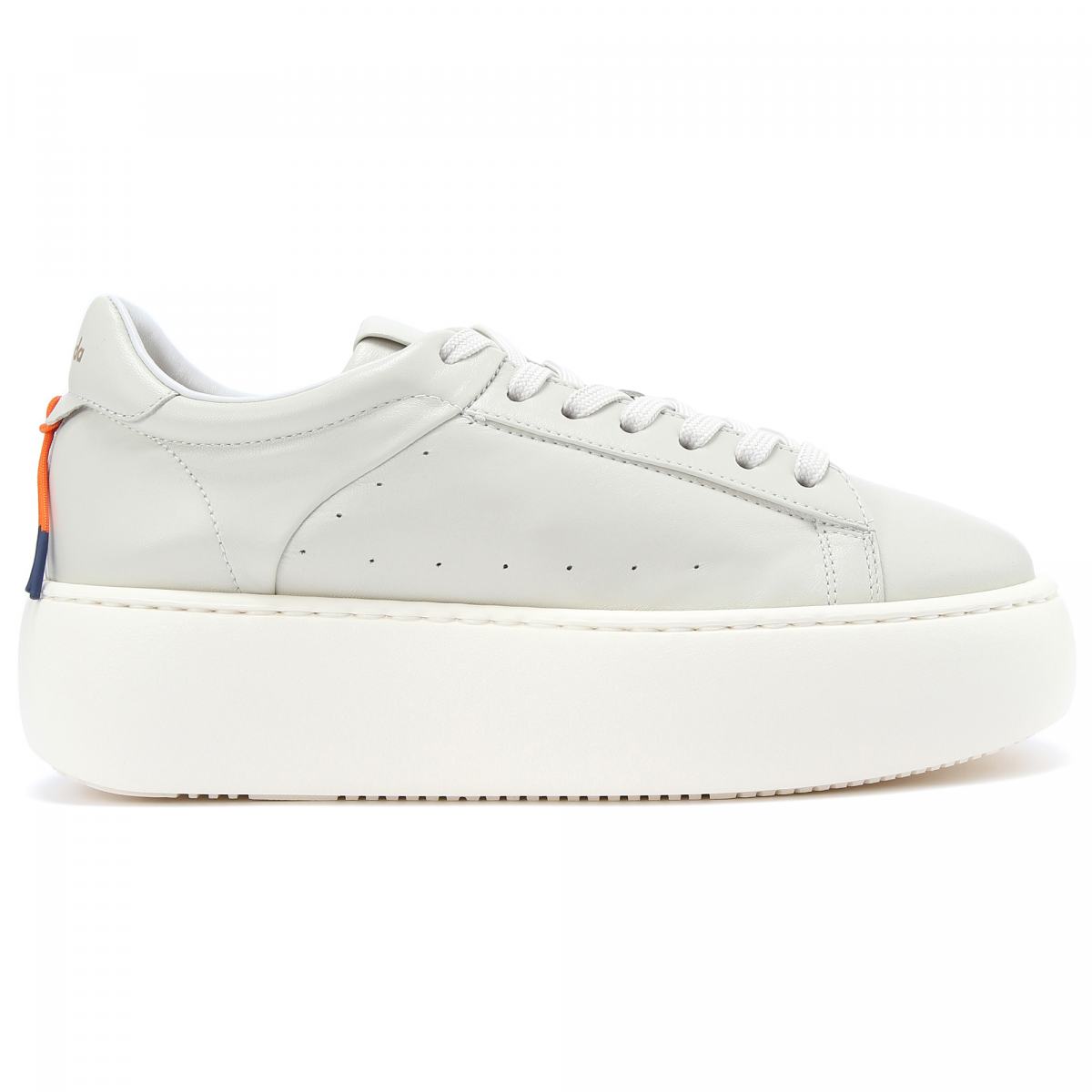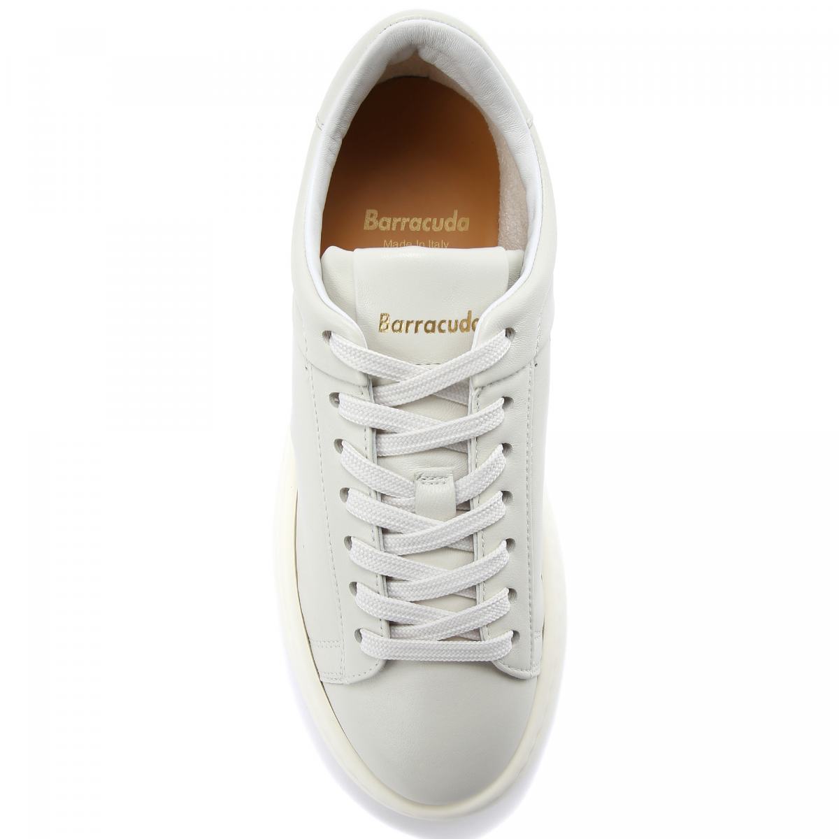 Белые кроссовки из натуральной кожи от Barracuda. Высокая резиновая подошва гарантирует мягкостью комфорт в каждом шаге. Текстильная шнуровка в цвет, фирменный логотип бренда на язычке, текстильная подкладка и стелька из натуральной кожи.