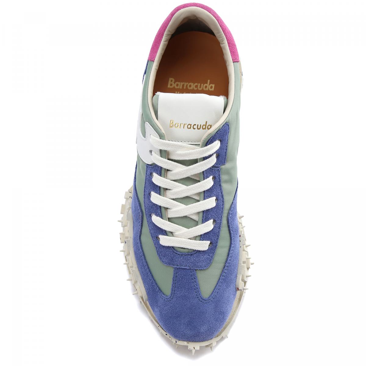 Комбинированные кроссовки в синем и сером цвете от Barracuda. Новые кроссовки IMPACT отвечают необходимости открывать новые комбинации, чтобы идти в ногу с постоянно меняющейся реальностью. Верх тканевый с замшевыми вставками. Подошва изготовлена из микрофибры с разноцветным протектором из переработанной резины. Дизайн завершает фирменный знак бренда сбоку.