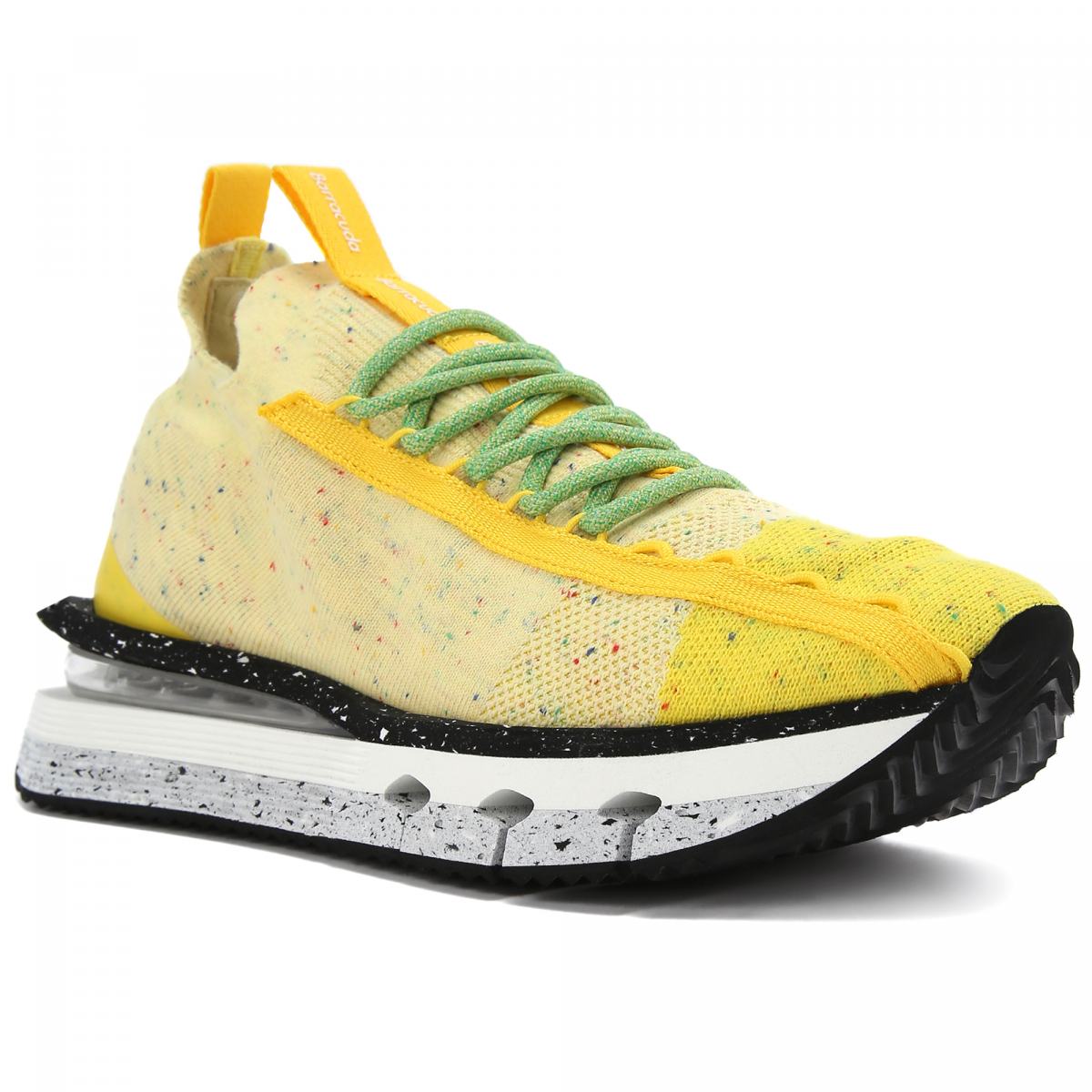 Комбинированные кроссовки в желтом цвете от Barracuda. Новая версия Barracuda NIKHO, изготовленная из различных технических тканей. Экологически чистые кроссовки для бега оснащены разноцветной микроподошвой из переработанных материалов и резиновым протектором, дополненным слоем высокоэластичного материала в межподошве для максимального комфорта.