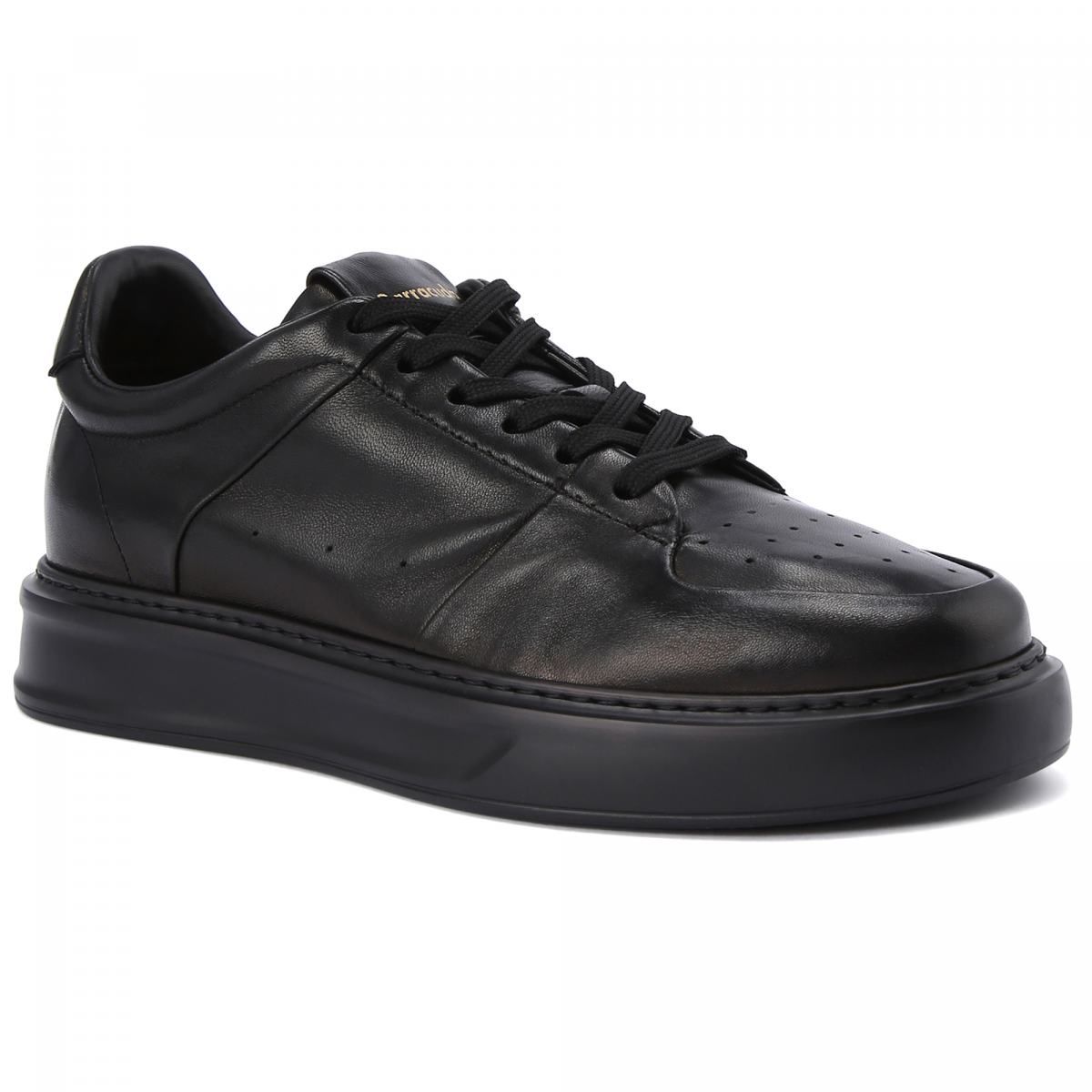 Кроссовки от Barracuda с чрезвычайно динамичными тонкими линиями изготовлены из высококачественных материалов. Данная модель из мягкой телячьей кожи представлена в чёрном цвете, со шнуровкой в тон и резиновой подошвой. Кроссовки дополнены сквозной перфорацией на носке, для дополнительной вентиляции летом. Базовая обувь подойдёт на каждый день, ведь эту модель можно носить как с брюками, так и с джинсами. Стелька выполнена из натуральной кожи.