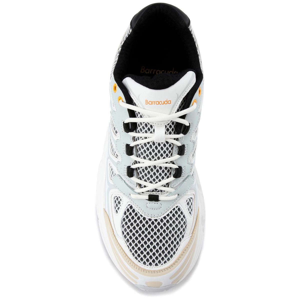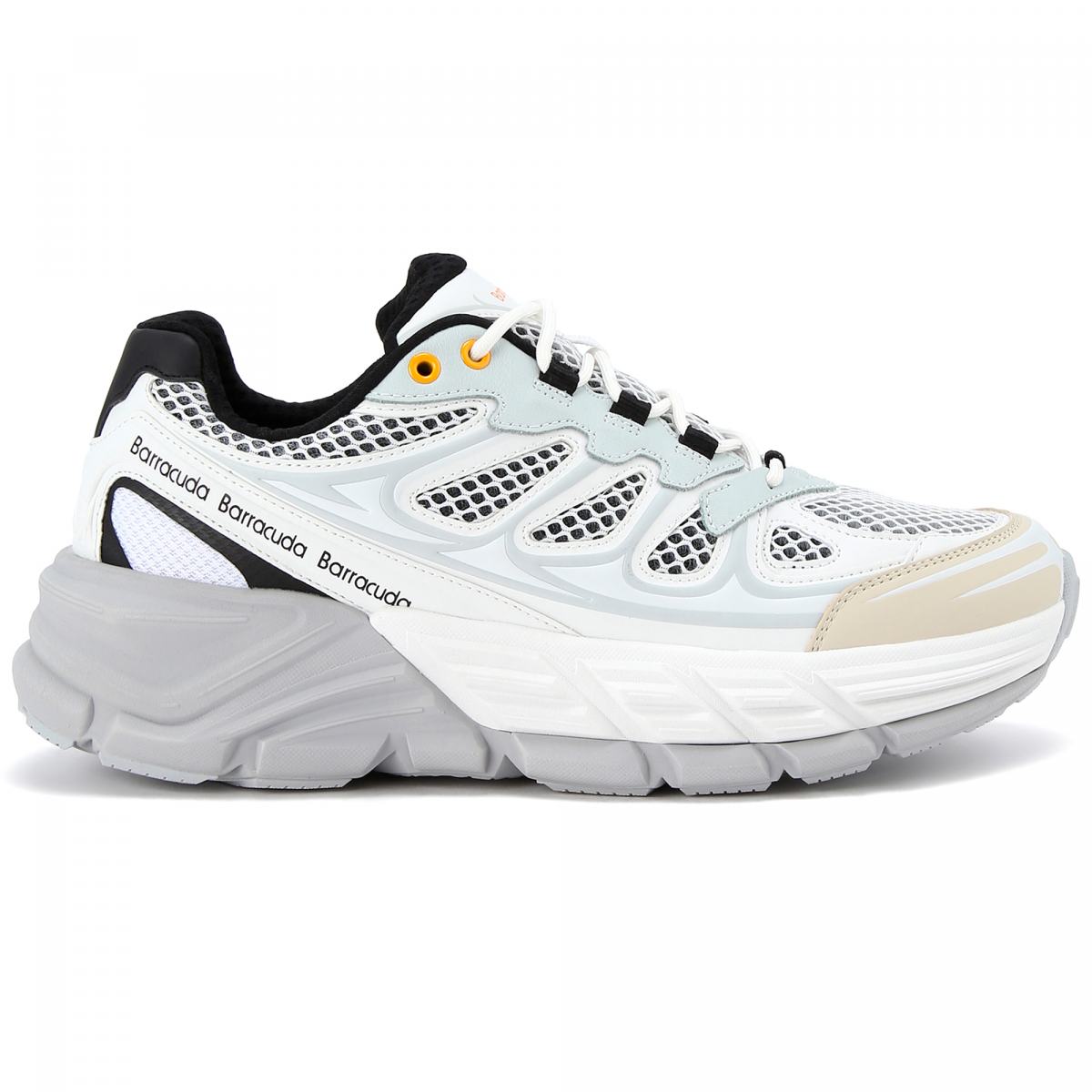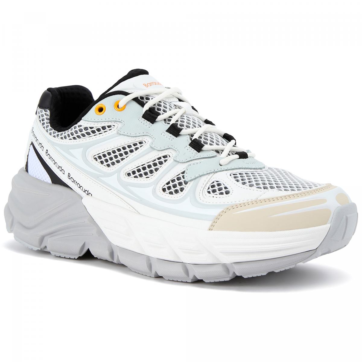 Белые кроссовки с текстильным верхом от Barracuda. Массивные кроссовки остаются на пике моды и в новом весенне-летнем сезоне. Пара в выполнена из сочетания текстильной сетки и гладкой кожи. Контрастные вставки ставки придают дизайну пары стильный акцент. Высокая, но легкая подошва из резины подарит комфорт в каждом шаге, где бы вы ни находились. Внутри текстильная подкладка и кожаная стелька.