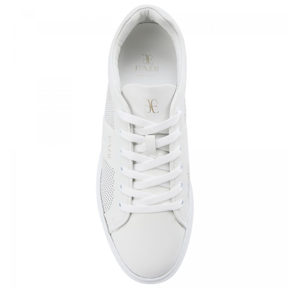 Белые кеды со сквозной перфорацией от Fabi станут идеальным решением на весенне-летний сезон. Модель выполнена из натуральной кожи, на резиновой подошве. Внутри подклад и стелька также из кожи. Дизайн завершает изображение логотипа, расположенное сбоку. Кеды легко стилизовать практически с любым образом.