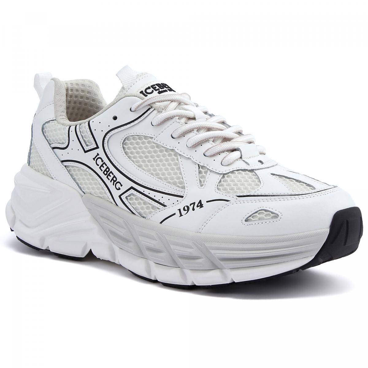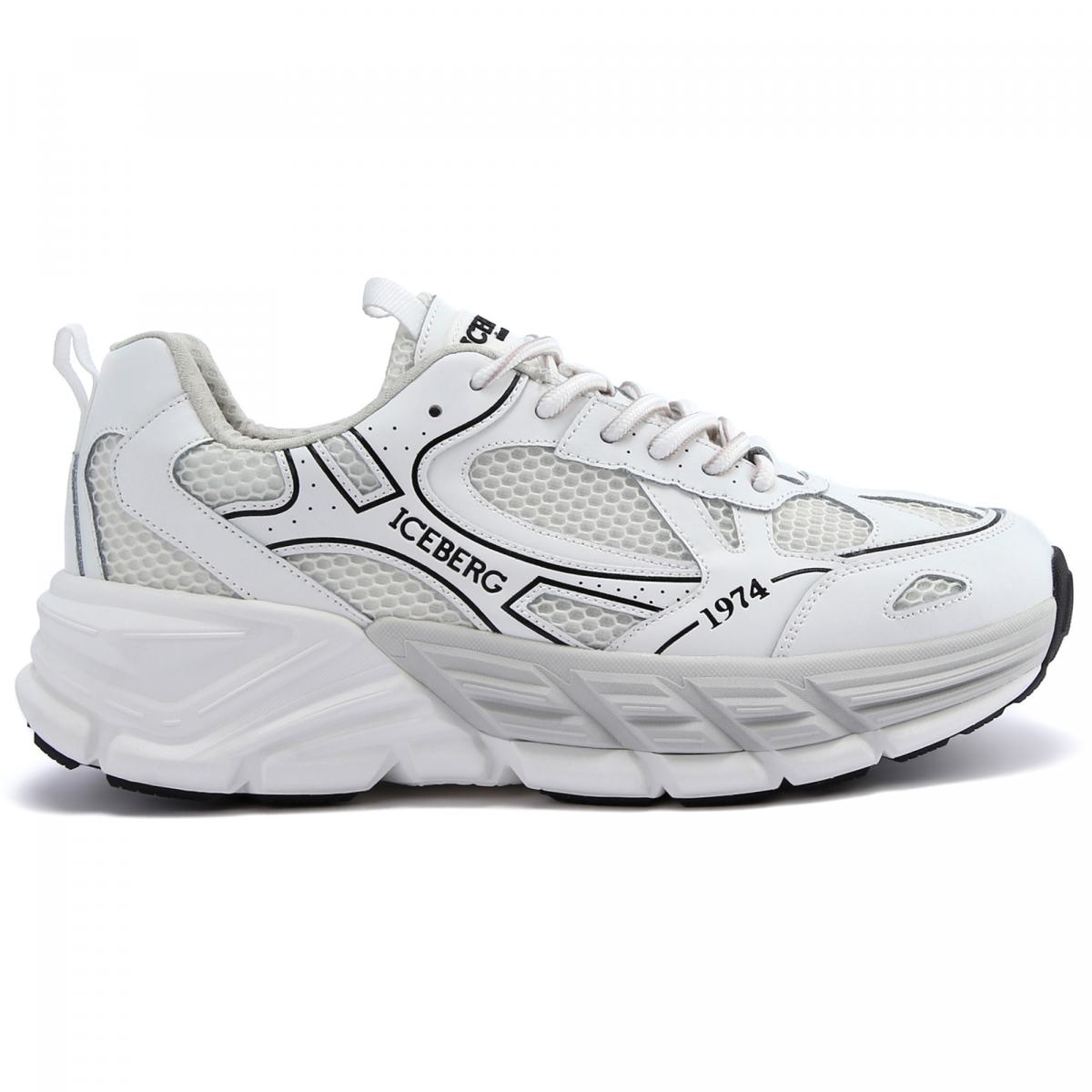Кроссовки в белом цвете от Iceberg. Современная элегантность. Белые кроссовки, выполненные из уникального сочетания кожи и сетки, с фирменным логотипом Iceberg, напечатанным на внешней стороне обуви, впишутся как в повседневный так и в спортивный образ. Нескользящая подошва Vibram® гарантирует надежное сцепление с различными поверхностями, обеспечивая комфорт и безопасность во время ходьбы. Подкладка и стелька выполнены из текстиля.