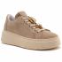 Бежевые кеды с акцентными деталями от Principe di Bologna подойдут для образов в стиле спортшик или для того, чтобы разнообразить повседневные сочетания. Модель выполнена из натуральной замши, на резиновой подошве. Внутри подклад и стелька из кожи. Акцентом дизайна служат блестящие пряжки со стразами на шнуровке. Кроссовки можно сочетать как с джинсами, так и с платьями.