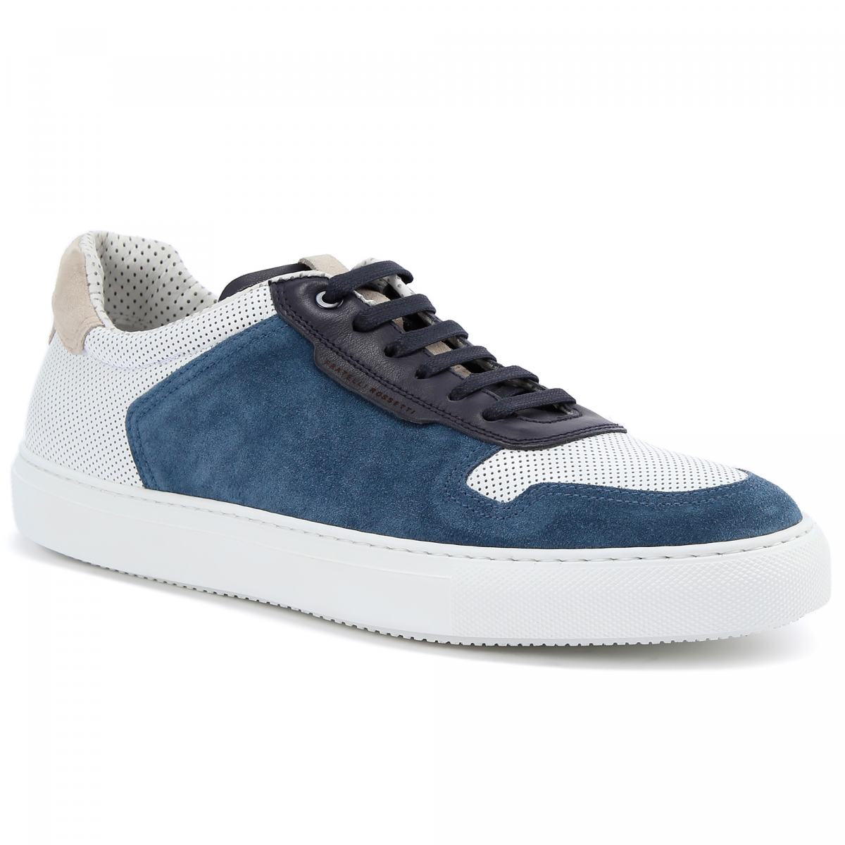 Кроссовки из натуральной кожи от Fratelli Rossetti One. Кроссовки в стиле color-block изготовлены из натуральной кожи с перфорацией и мягкой замши. Характерная деталь — рантовой метод крепления подошвы. Обувь, в которой объединены традиции и стиль. Съёмная дышащая внутренняя стелька. Резиновая подошва.