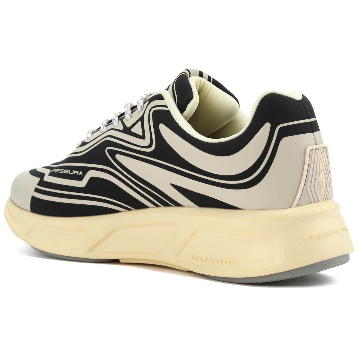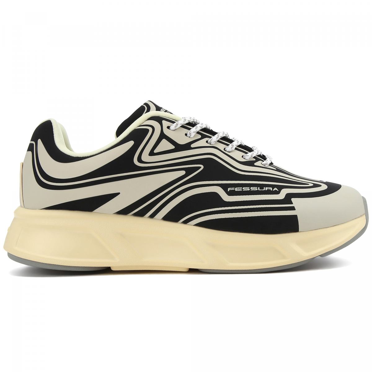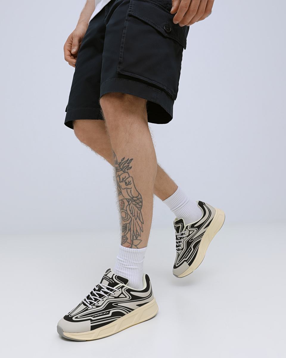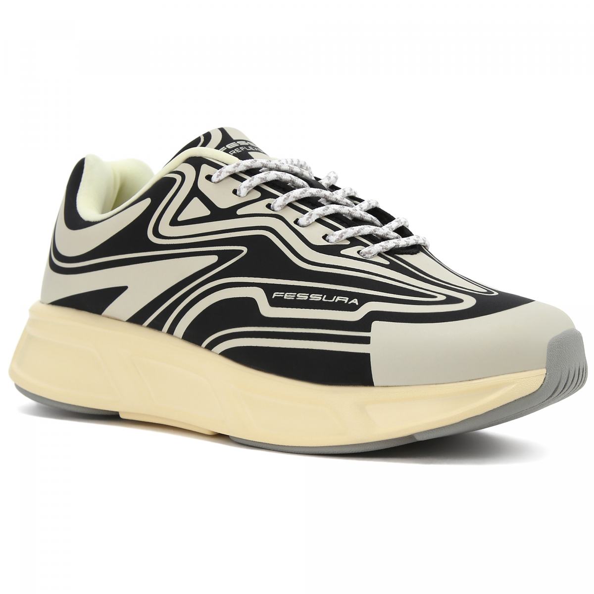 Кроссовки Fessura в черно-белом цвете. Кроссовки RUN выполнены из водоотталкивающего технического материала, с трехмерной прорезиненной текстурой. Внутри съемная стелька. Обувь дополняет прорезиненная вставка на пятке и подошва из ЭВА с серой резиновой отделкой. Пара для отдыха и длительных прогулок на природе. Максимальный комфорт и сухие ноги в любой ситуации!
