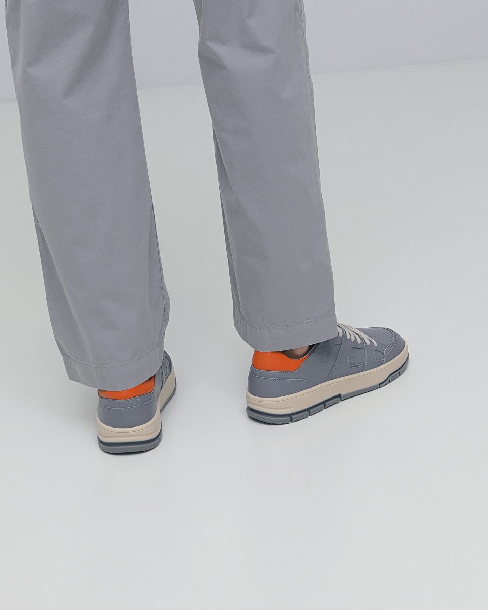 Кроссовки из натуральной кожи от Principe di Bologna. Серые кроссовки легко впишутся в гардероб человека, который предпочитает активный образ жизни. Дизайн дополняет контрастный задник из оранжевой кожи. Перфорация сбоку и на носке обеспечивает вентиляцию. Модель выполнена из натуральной кожи, на резиновой подошве. Внутри стелька также из кожи и текстильная подкладка. Кроссовки будут уместны как в спортивных, так и в повседневных образах.