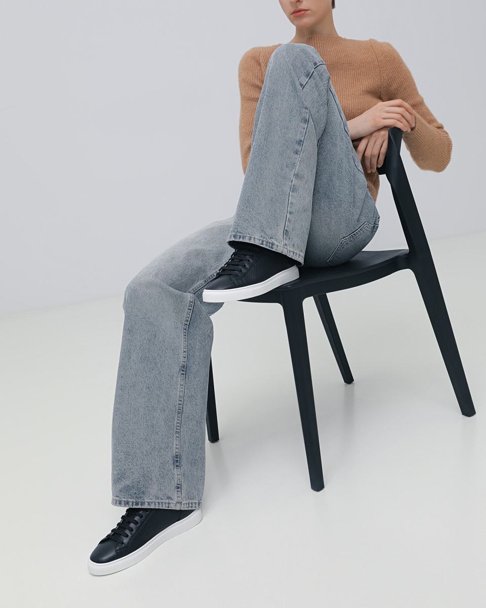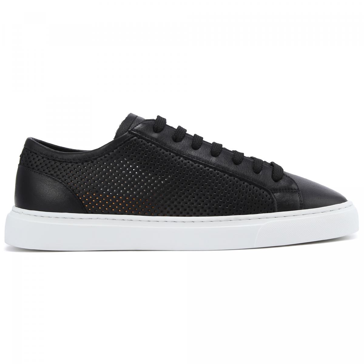Кеды из натуральной кожи в черном цвете от Doucal’s. Модель с перфорацией особенно актуальна для жарких летней дней. Контрастная сверхлёгкая резиновая подошва, текстильная шнуровка в цвет, стелька и подкладка из натуральной кожи. Сделано в Италии.
