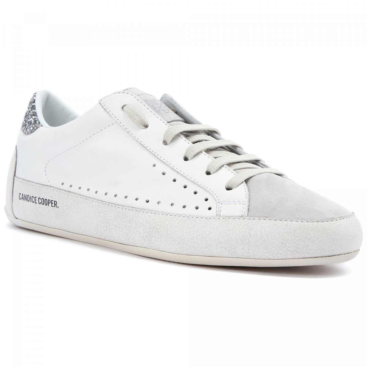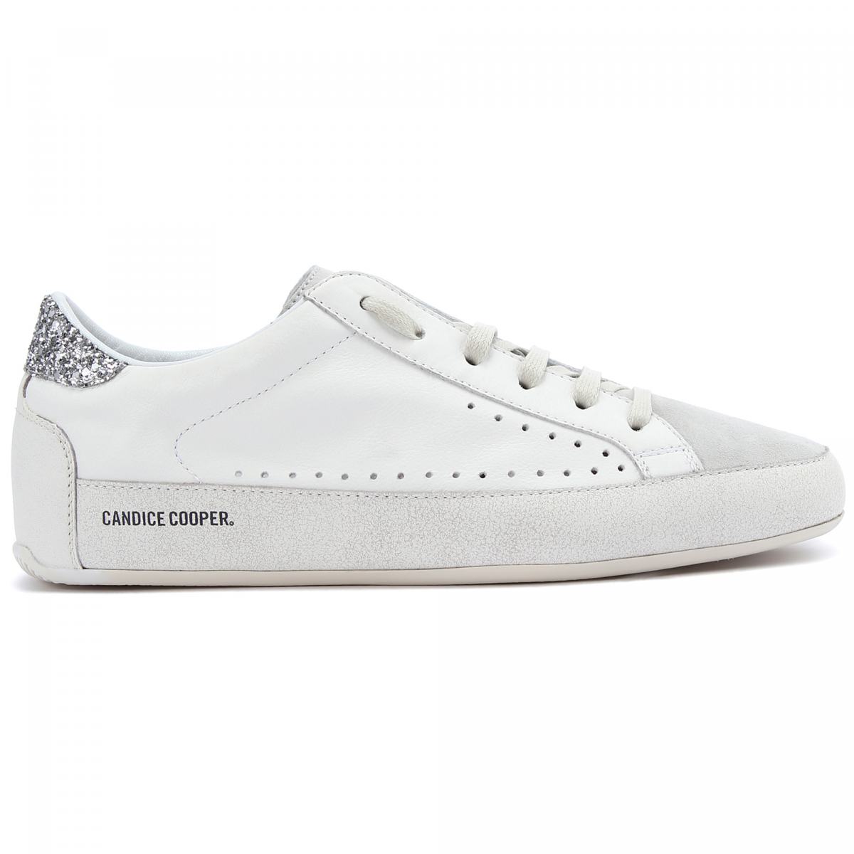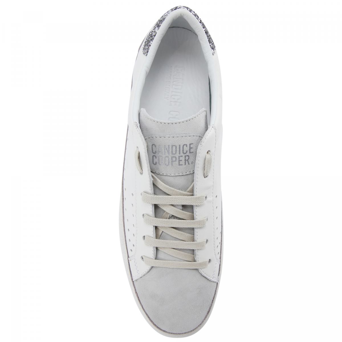 Кеды из натуральной кожи в белом цвете от Candice Cooper. Модель из летней линейки бренда поможет сформировать стильный casual образ. Дизайн подчеркнут высокой подошвой из резины с фирменным логотипом бренда и серебристым задником. Текстильная шнуровка, стелька и подкладка из натуральной кожи.
