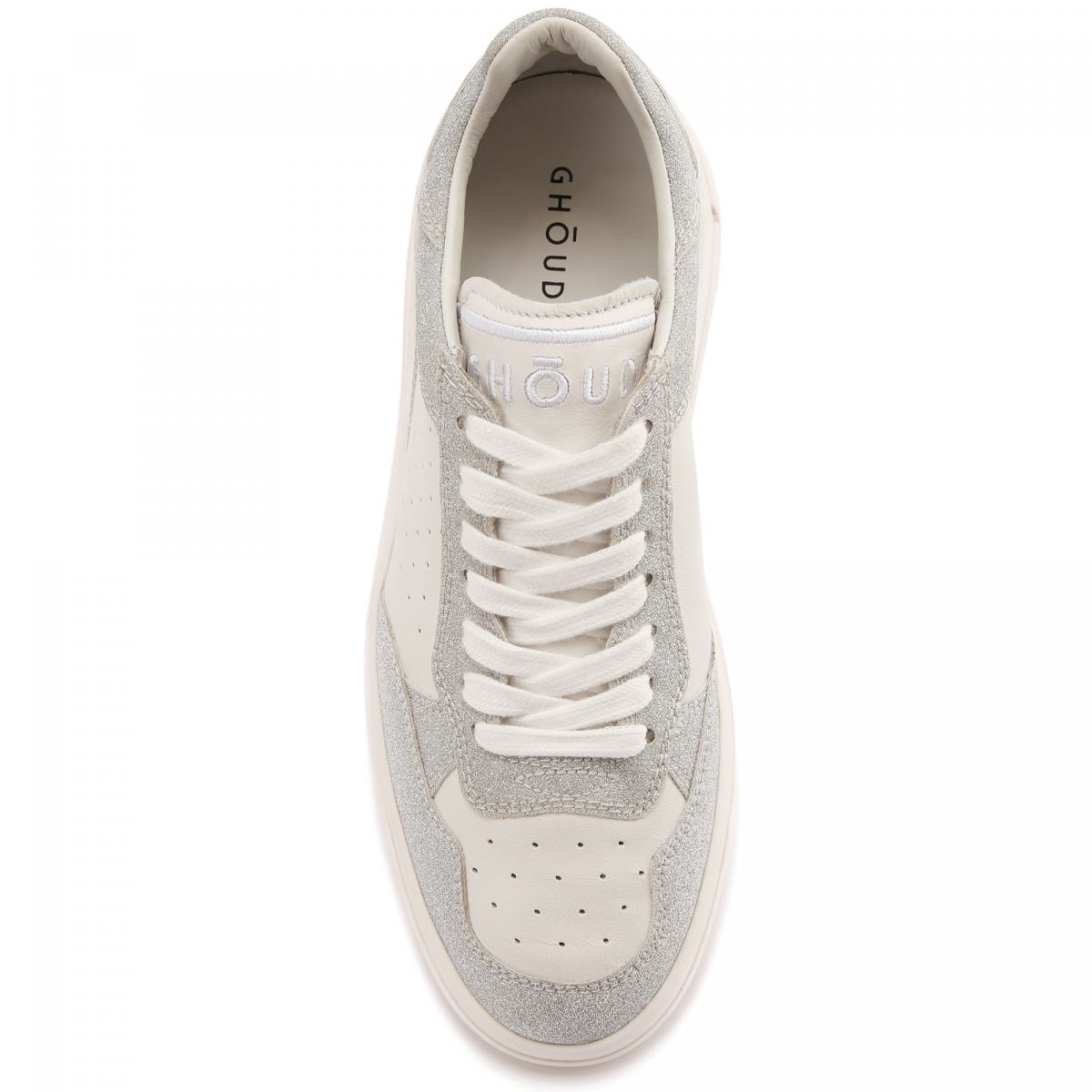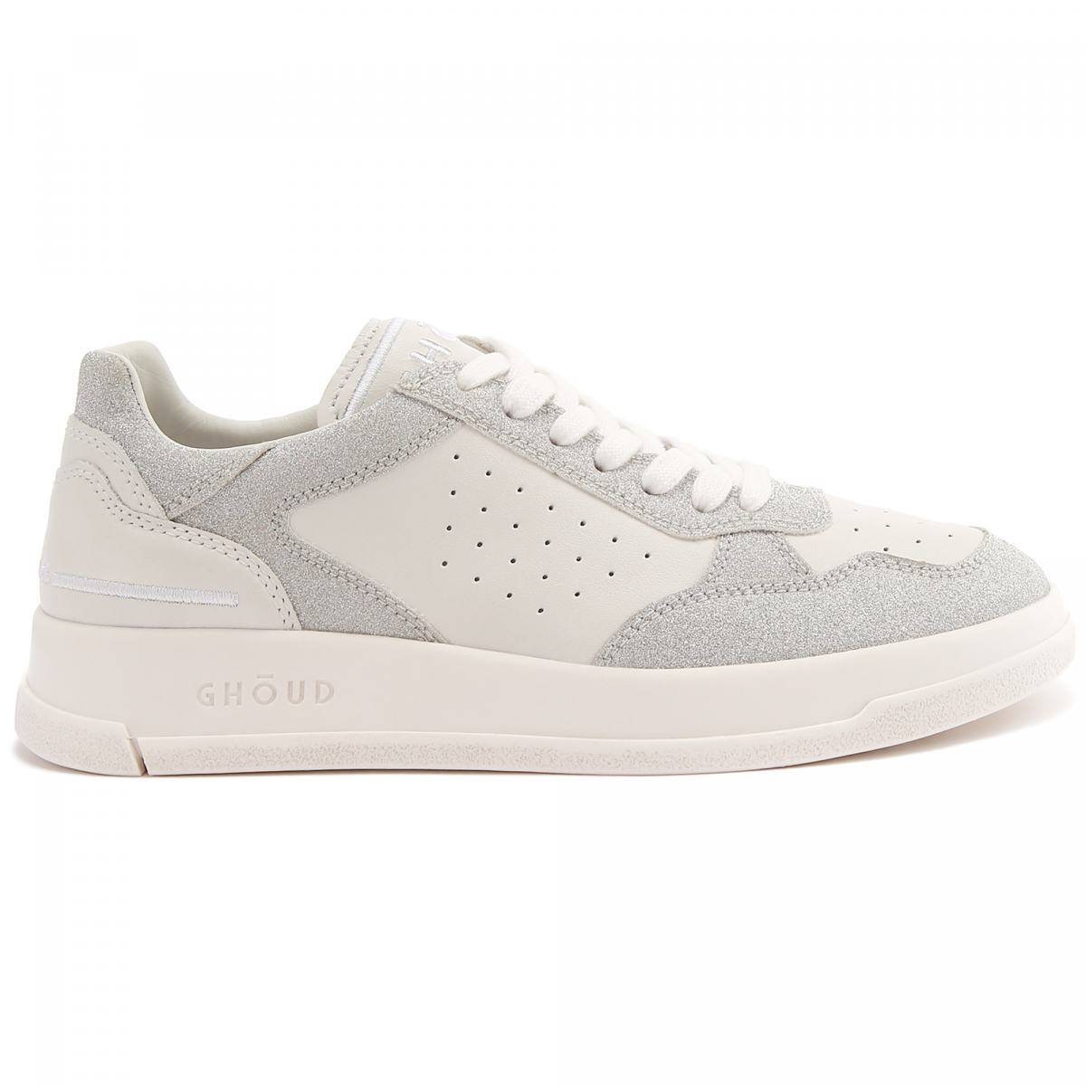 Кроссовки в белом цвете от GHOUD. Теннисные кроссовки модели Tweener от Ghōud имеют дизайн, вдохновленный кортом, но при этом не отказывающийся от стиля. Многослойный верх из мягкой кожи и светло-серыми замшевыми вставками. Перфорация обеспечивает приток воздуха. Резиновая подошва, текстильная подкладка и стелька из натуральной кожи.