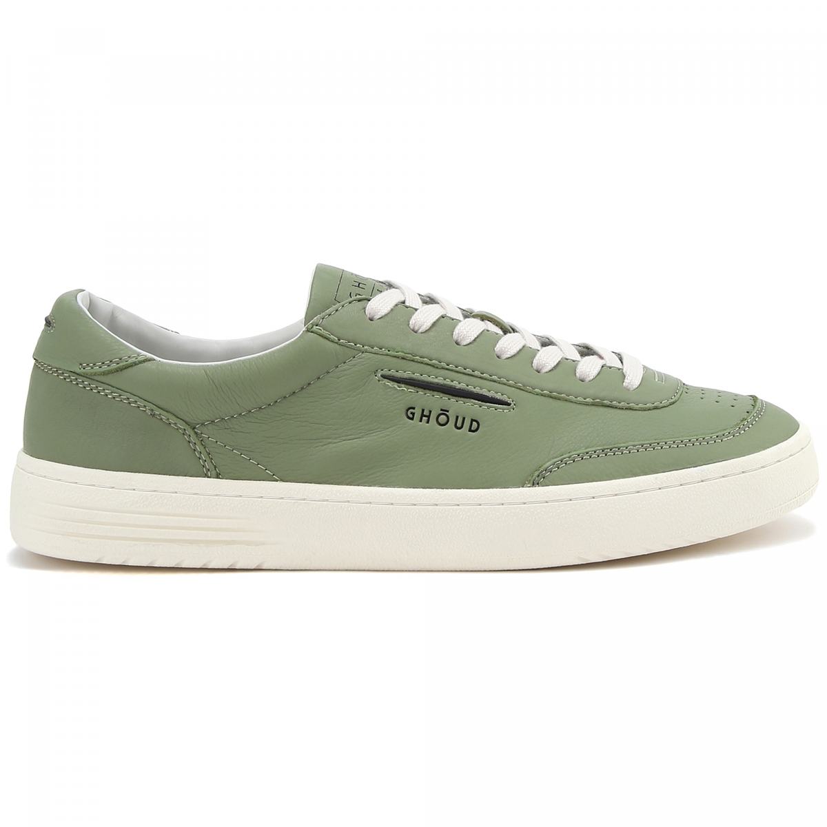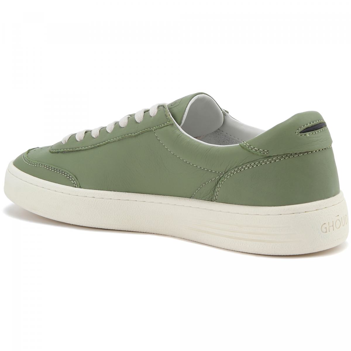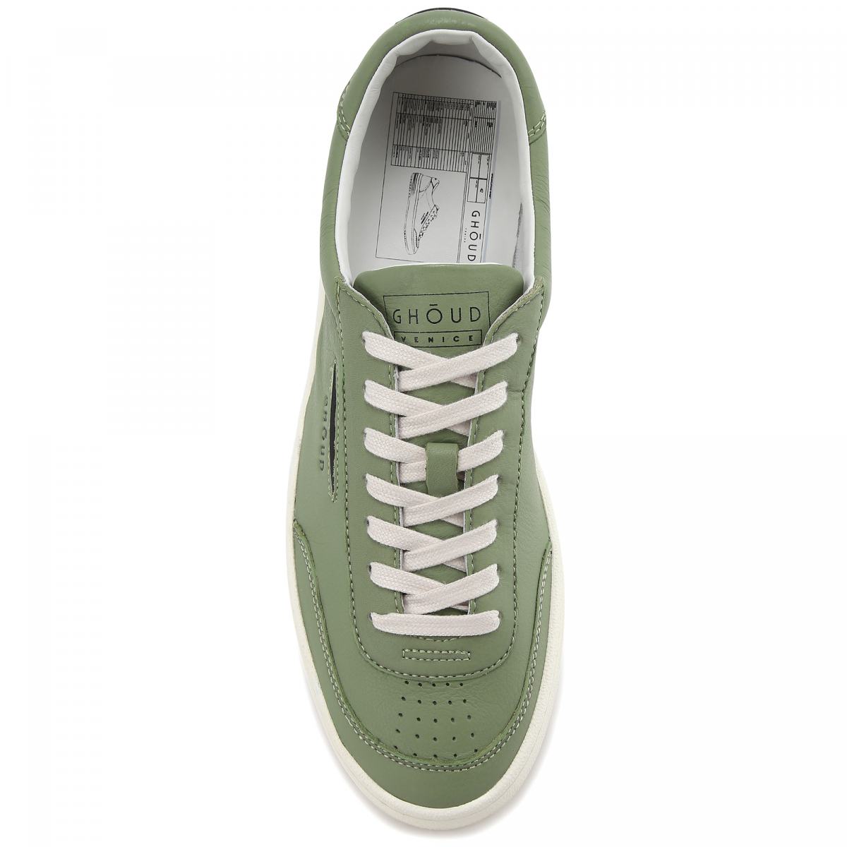 Кроссовки из натуральной кожи в зеленом цвете от GHOUD. Пара в сдержанном стиле, которая подойдет к городскому образу с джинсами или брюками. Верх выполнен из мягкой кожи и дополнен фирменным логотипом бренда сбоку. Подошва в белом цвете из резины и текстильная шнуровка завершают дизайн пары. Внутри кожаные подкладка и стелька.