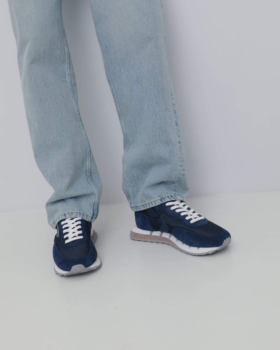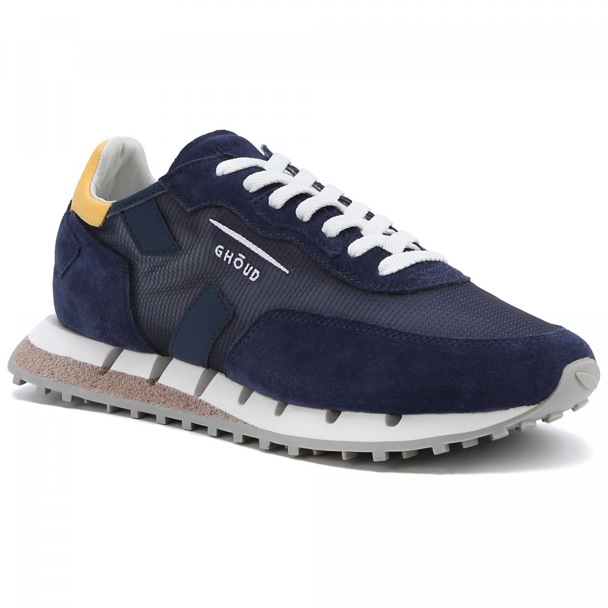 Тёмно-синие кроссовки из текстиля и замши от GHOUD. Кроссовки Ghōud Rush Teeth отличаются уникальным стилем и легким дизайном. Верх выполнен из полупрозрачной сетки и замши с вставками тон в тон. Подошва изготовлена из комбинации двух материалов и имеет стратегически расположенную перфорацию для повышения комфорта. Модель, подходящая для активной жизни.