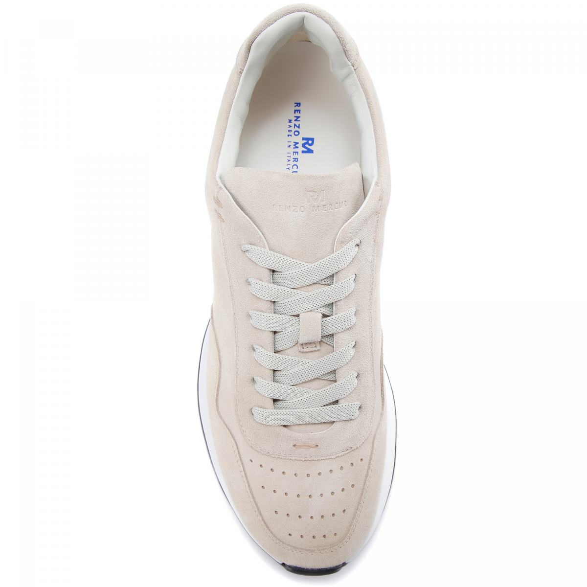Кроссовки от Renzo Mercuri из натуральной замши в бежевом цвете. Кроссовки из замши идеально подойдут для городского стиля в теплое время года. Верх выполнен из натуральной замшевой кожи, внутри подкладка и стелька из натуральной кожи. Дизайн пары дополняет спортивная подошва из резины белого цвета и текстильная шнуровка в цвет. Благодаря сдержанному дизайну, пара одинаково уместно смотрится как с джинсами, так и с брюками в стиле casual.